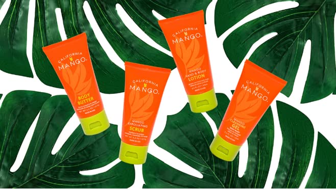 Mango Cleansing Gel Body Wash - 2.2oz This concentrated shower gel washes away dirt, excess oil and other impurities, leaving skin fresh, hydrated and protected. HOW TO USE Apply to wet skin using hands, washcloth or loofah, then work into a light foam. Leave on for 30 seconds then rinse. Mango Exfoliating Scrub - 2.2oz Gentle enough for daily use — but strong enough to encourage cellular turnover for refreshed, dewy skin — this everyday exfoliator leaves skin ready for a day at the beach. HOW TO USE Apply to damp skin, massaging in circular motions in desired areas. For best results, use at least weekly and follow up with California Mango Hand Body Lotion. Mango Body Butter - 2.2oz HOW TO USE Using circular motions, apply a thin layer of Body Butter to clean, dry skin. Hand Body Lotion - 2.2oz WHAT IT DOES Get head-to-toe hydrated with this simple, clean total body lotion, infused with our signature mango scent. HOW TO USE Using circular motions, massage lotion over hands and body.
