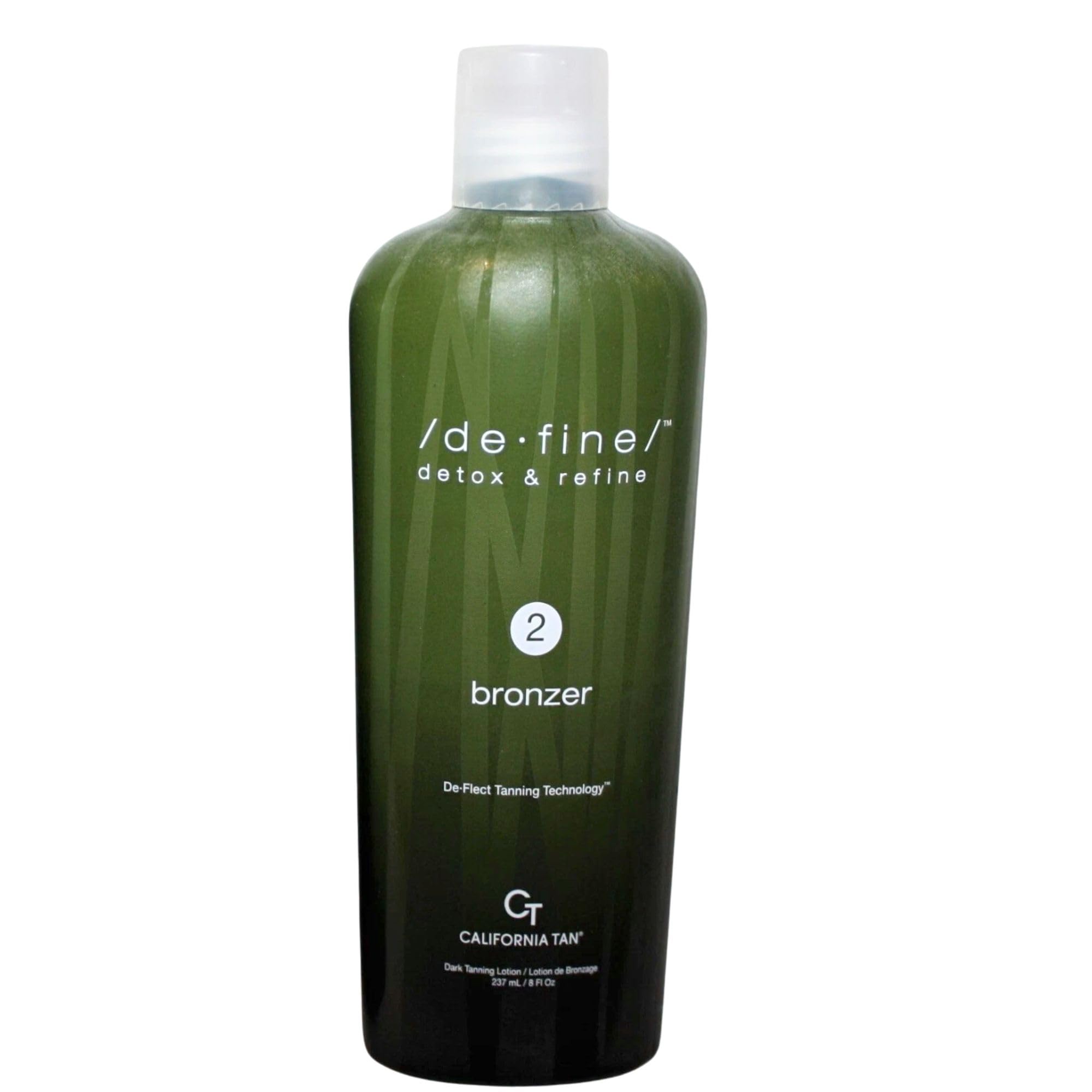 California Tan - De Fine Bronzer - Step 2 Bronzer Tanning Bed Lotion 8 ounce Enhance Your Tanning Experience: De Flect Tanning Technology: Maximize your tan with advanced technology. De fine Technology: Achieve perfected pores for a longer-lasting, beautiful dark tan. Detox and Refine: Purify your skin with Seaweed, Green Tea, and Arugula while rejuvenating with proteins. Instant and Delayed Color: Enjoy instant and delayed color results with a blend of Cosmetic and DHA Bronzers. CuO2 and TRF: Rich ingredients combine to optimize dark color results.