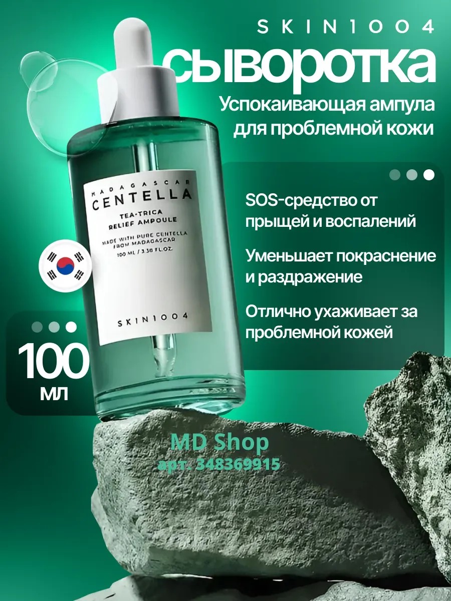 Ампула SKIN1004 Madagascar Centella Tea-Trica Relief Ampoule — SOS-средство от прыщей и воспалений, которое помогает в борьбе с акне, смягчает кожу, уменьшает покраснение и раздражение, отлично ухаживает за проблемной кожей.