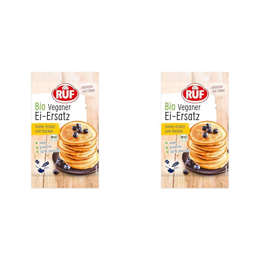 Ingredients ingredients Corn starch , pea protein , potato starch , thickener of St. John's bread brew . from controlled organic cultivation. Instructions Preparation: each egg: 7 g (1 heaped TL) egg replacement 50 ml darn water stir: done!Then add other liquid ingredients (e.g. oil, plant drink etc.) and then mix with the dry ingredients (e.g. flour) to an even mass.28 g correspond to 4 full eggs.the colorful world of call: Since 1920, calling a call with a colorful variety of well -tried and new products.We offer quality products at a reasonable price for young and old.Organic quality: When manufacture, the use of raw materials is taken into account in a controlled organic cultivation.The egg replacement is also suitable for a gluten-free diet.Corresponds to 4 full eggs: a bag (28 g) corresponds to 4 chicken full eggs.Simply mix 7g egg replacement (corresponds to 1 heaped TL) with 50 ml of sparkling water the vegan egg mixture is ready.100 vegetable: If you want to or have to do without eggs, you can use the egg replacement wonderfully for baking cooking, as it is obtained from corn starch, pea protein, potato strength and Johannis bread gear.Tiller replacement for baking: The egg is a central ingredient in many sweet treats such as cakes, muffins waffles but also in hearty dishes.The egg replacement is the ideal alternative for egg-free baking.The following information applies to each unit per pack.INHALTSSTOFFE ZUTATEN Maisstärke , Erbsenprotein , Kartoffelstärke , Verdickungsmittel Johannisbrotkernmehl . aus kontrolliert biologischem Anbau. GEBRAUCHSANWEISUNG Zubereitung: Je Ei: 7 g (1 gehäuften TL) Ei-Ersatz 50 ml Sprudelwasser rühren : fertig! Anschließend weitere flüssige Zutaten (z.B. Öl, Pflanzendrink etc.) zugeben und danach mit den trockenen Zutaten (z.B. Mehl) zu einer gleichmäßigen Masse vermengen. 28 g entsprechen 4 Volleiern.DIE BUNTE WELT VON RUF: Seit 1920 verwöhnt RUF mit einer bunten Vielfalt an altbewährten und neuen Produkten. Wir bieten Qualitätsprodukte zu einem angemessenen Preis für Groß und Klein. BIO-QUALITÄT: Bei der Herstellung wird auf die Verwendung von Rohstoffen aus kontrolliert biologischem Anbau geachtet. Dazu ist der Ei-Ersatz auch für eine glutenfreie Ernährung geeignet. ENTSPRICHT 4 VOLL-EIERN: Ein Beutel (28 g) entspricht 4 Hühner-Volleiern. Einfach 7g Ei-Ersatz (entspricht 1 gehäuften TL) mit 50 ml Sprudelwasser mischen fertig ist die vegane Ei-Mischung. 100 PFLANZLICH: Wer auf Eier verzichten möchte oder muss, kann den Ei-Ersatz wunderbar zum Backen Kochen verwenden, da er aus Maisstärke, Erbsenprotein, Kartoffelstärke und Johannisbrotkernmehl gewonnen wird. VOLLEI-ERSATZ ZUM BACKEN: Das Ei ist eine zentrale Zutat in vielen süßen Leckereien wie Kuchen, Muffins Waffeln aber auch in herzhaften Gerichten. Der Ei-Ersatz ist die ideale Alternative für das Ei-freie Backen. Die folgenden Informationen gelten für jede Einheit pro Packung.RUF Bio Veganer Ei-Ersatz, 100 pflanzlicher Vollei-Ersatz, Ei-Ersatz-Pulver zum Backen, Kochen, Panieren für Desserts, entspricht 4 Eiern (Packung mit 2) 28 g (2er Pack) Vollei