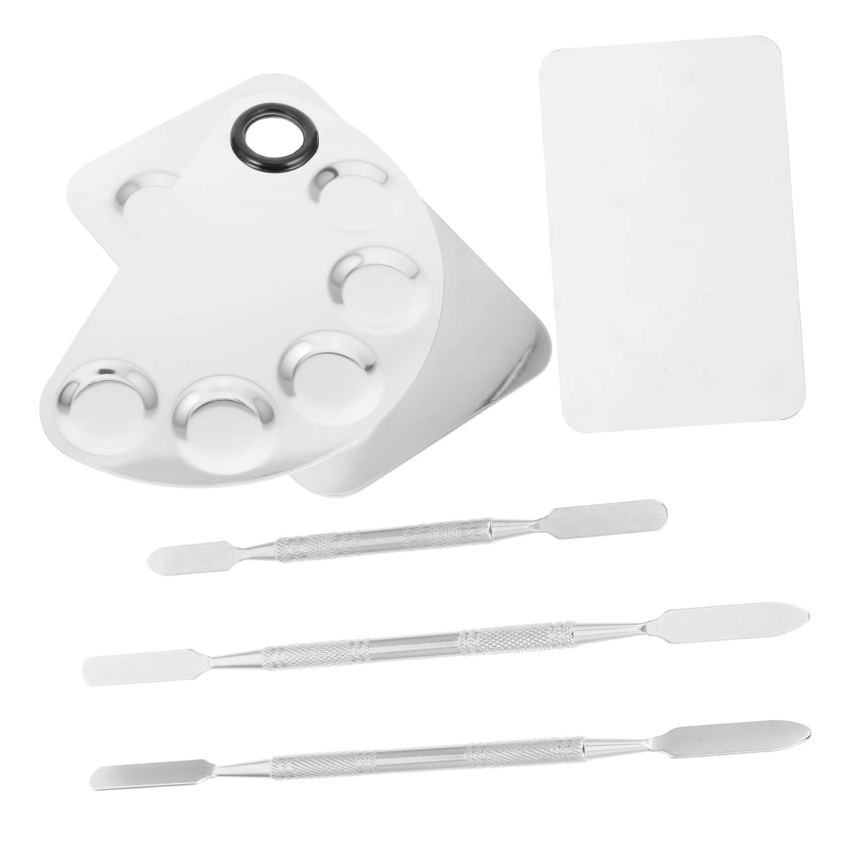 Cosmetic: Made from select stainless steel, this makeup pigment mixing plate is durable for long-term use. Perfect for blending colors and preventing cross-contamination, this nail art mixing plate is ideal for makeup application. The smooth, soft surface won't damage your fingers. Suitable for professionals, makeup beginners, salons, and home use, this easy-to-use makeup color mixing plate set is perfect for nail art. This convenient and practical nail art tool is a great addition to any nail art routine.