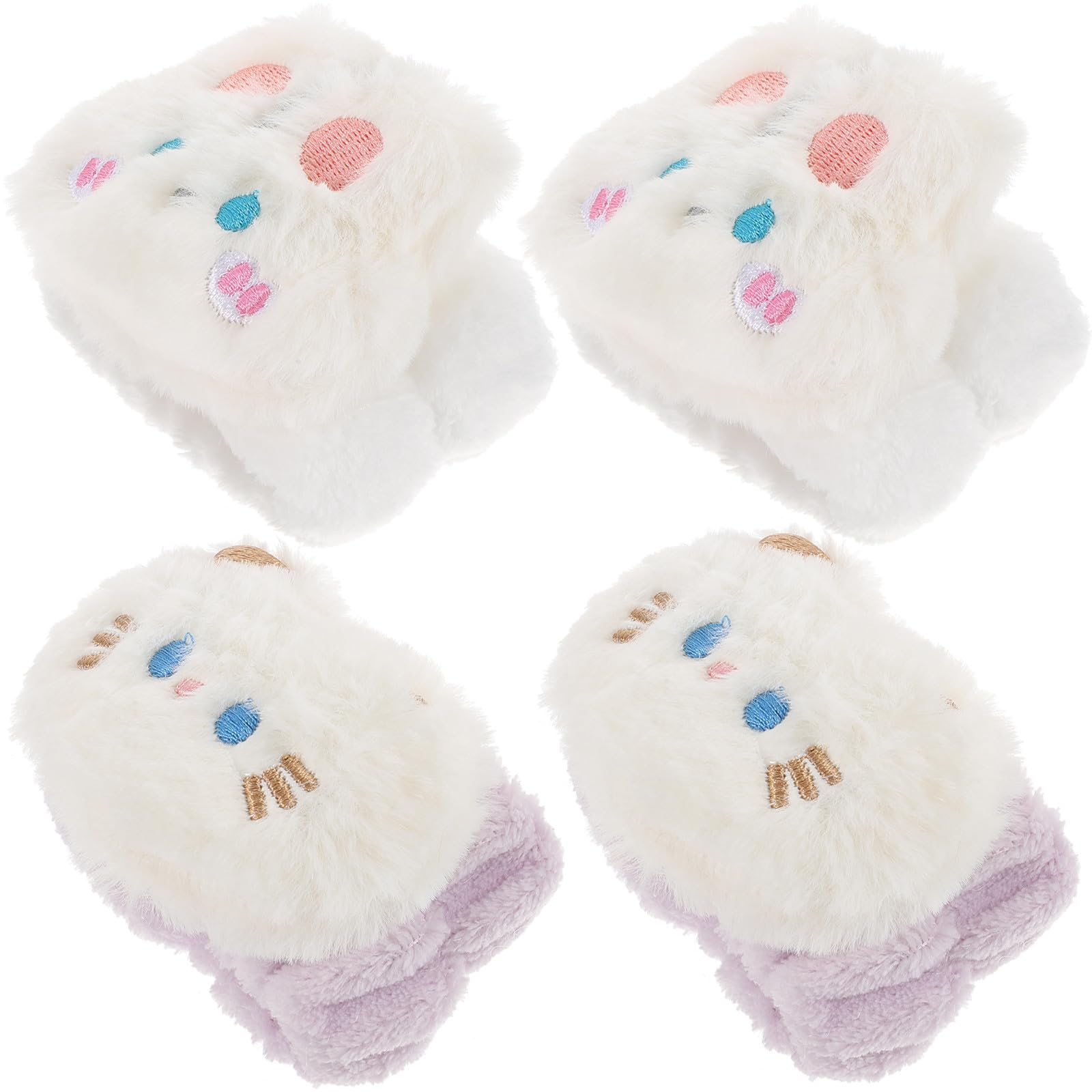 CALLARON Lot de 4 Bracelets Imperméables pour Lavage du Visage, Élastiques et Confortables en Imitation Fourrure de Lapin, Taille Ajustable, pour Soins du Visage et Usage Quotidien,