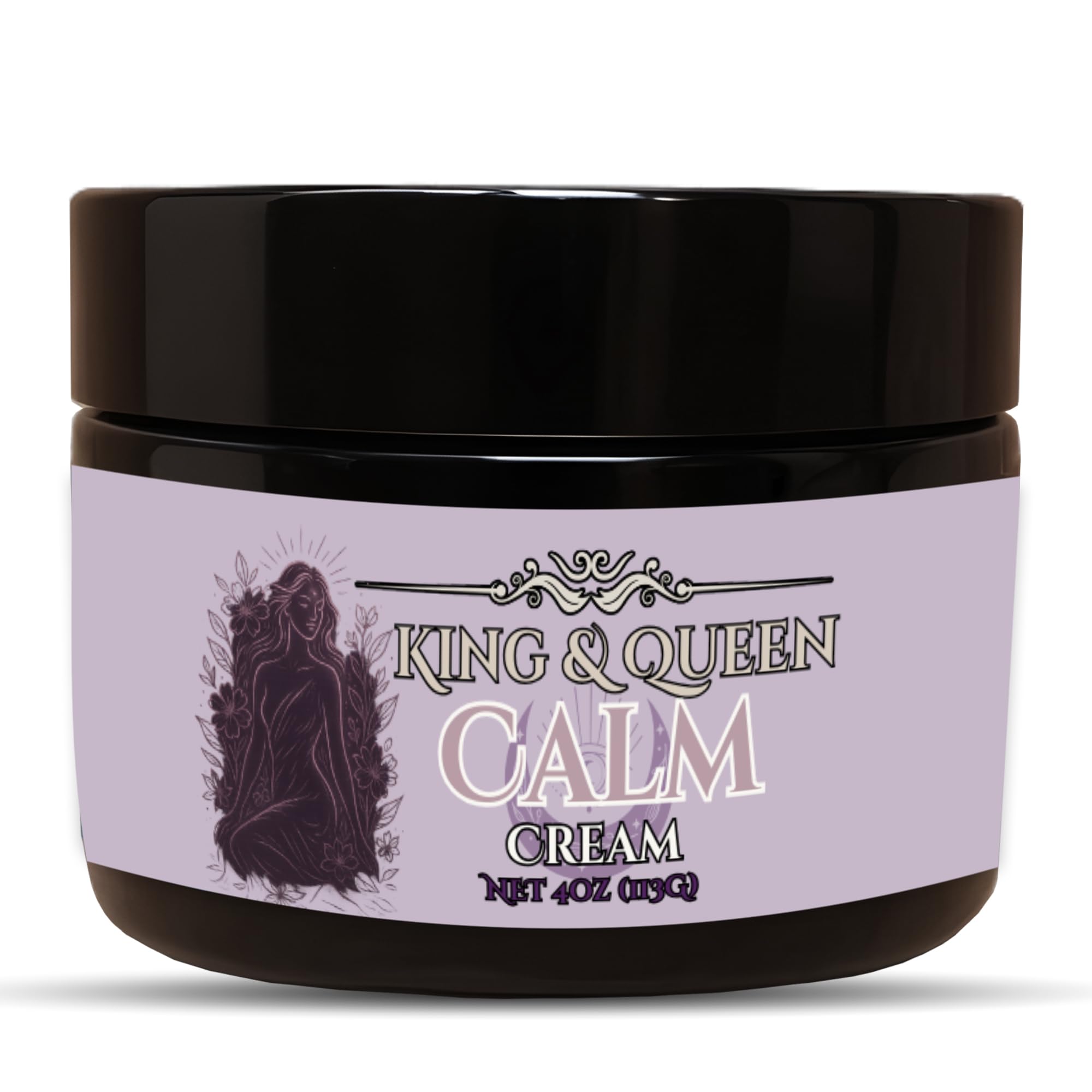 Calm Stress-Relief & Adrenal Support Cream Relaxation & Mood Balance | Ashwagandha Rhodiola Ginseng Magnesium Inositol | 4 oz King & Queen Wellness