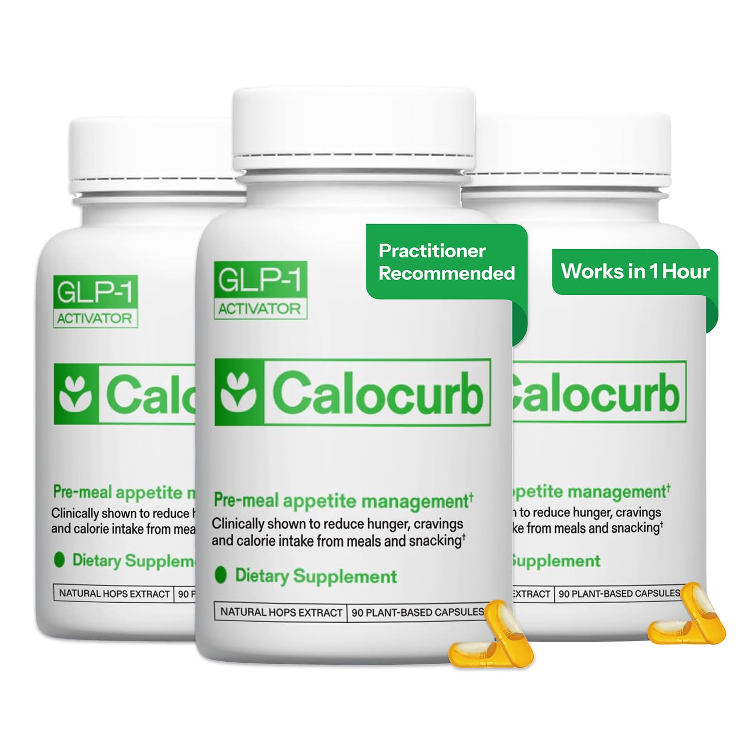 Important: Take Calocurb GLP1 booster on an empty stomach one hour before meals. Follow the instructions on the pack when starting Calocurb to minimize any side effects. What to Expect: Calocurb is not a 'magic solution' and for best results use in conjunction with healthy eating and exercise. Most people experience no side effects when they follow our dosage protocol but everybody is different and every body's digestive system adapts to Calocurb differently. If there is an effect, a short term laxative effect or stomach discomfort is the most common and is completely normal eg within 24-72 hours. The Result: Calocurb stimulates the release of gut hormones (GLP-1 and CCK) by 600 above baseline, sending a natural 'fullness' signal to the brain which makes you feel full faster. The Active Ingredient: Amarasate (Am-ar-eh-sate) is an extract from hops. Calocurb is 100 natural and plant-based. It contains no sugar or caffeine. Manufactured in the US. Proven to Work OFFICIAL Calocurb Formula: Calocurb is practitioner recommended and has been shown to naturally stimulate your body's own GLP-1 by 600 above baseline within one hour— reducing hunger(30 ), cravings (40 ) and calorie intake (18 ).