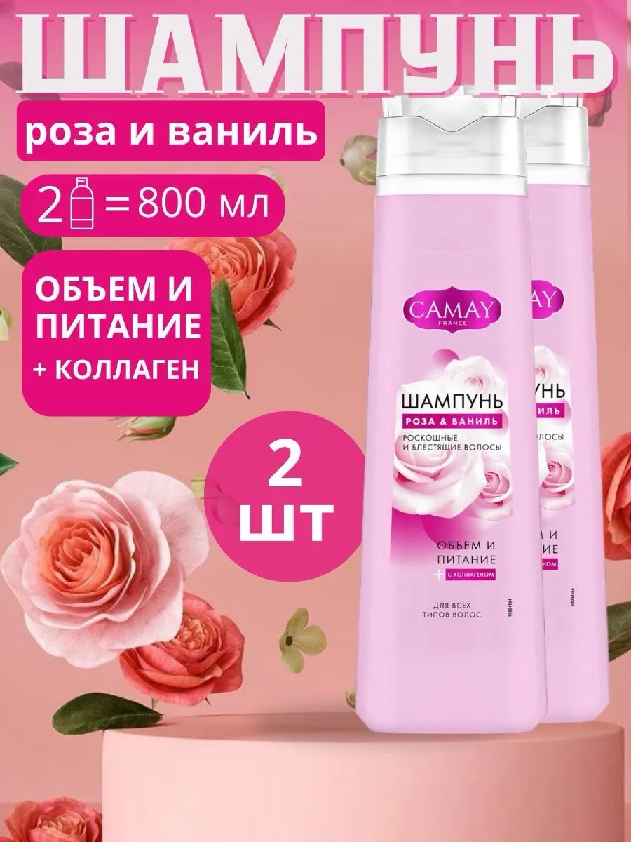 Camay / Камей Шампунь женский парфюмированный роза и ваниль 800 мл набор