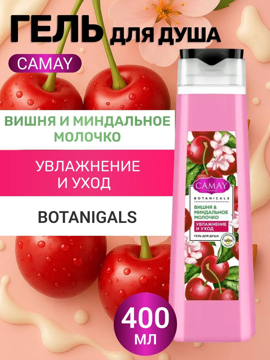 | Полное наименование товара | Гель для душа Вишня и миндальное молочко Botanicals Camay |