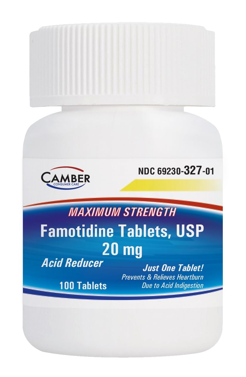 Camber Famotidine Tablets 20 mg Maximum Strength Acid Reducer for Heartburn Relief 100ct