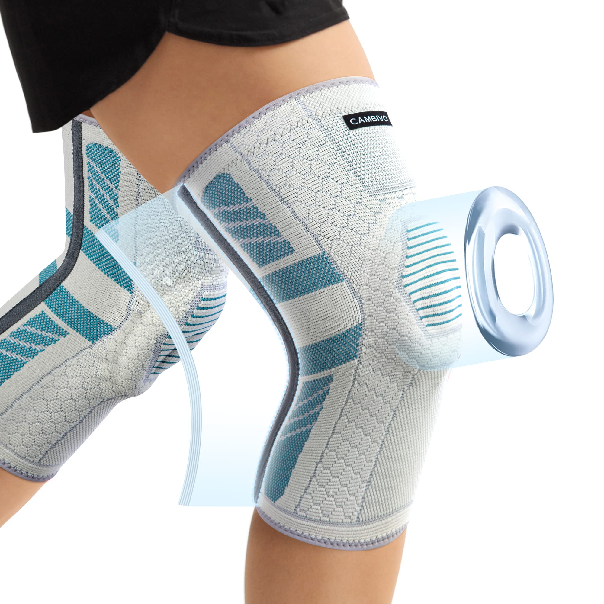 A Functional Gift for Fitness Lovers: Come with 2 Pack (1 Pair) to protect both knees or back up your daily wear; a heartwarming share with your friends and family to stay in an active lifestyle together; a helpful treatment for knee pain is prevention, so slip the knee compression sleeves men and women on and get your knees covered for at-home use and outdoor activities. Enjoy More Functions and Comfort: Apply moderate compression around your knees to offer knee support for men and women; increase blood circulation and get muscles relaxed and re-energized quickly; help relieve tendon tightness and stiffness, inflammation, and swelling; reduce strains and sprains; keep your knees warm and feel cozy in cold weather. Gear Up for Various Activities: knee brace for working out, running, hiking, walking, volleyball, basketball, soccer, cycling, yoga, and more; versatile use for gym workouts, at-home moves, outdoor activities, and all-day standing or working; comfortable wearing without restricting your mobility or interfering with your performance. Breathable Fabric & Anti-slip Cuff: 3D knitting makes the compression knee brace moisture-wicking, lightweight, and soft; high-elastic fabric enables full coverage and snug fit; stretchy for easy on and off; honeycomb patterns add adequate tightness on the skin, coordinating with anti-slip silicon strips to prevent slipping or rolling; an excellent mix-up with knee support and comfort. Preventive Daily Care & Knee Pain Relief: Our compression knee sleeves focus on prevention in casual and sports activities; suitable for fitness enthusiasts, athletes, the elderly, and anyone who needs knee braces for knee pain; knee brace for meniscus tear, osteoarthritis, arthritis, tendonitis, bursitis, ACL, PCL, MCL; speed up recovery and prevent potential joint injuries. Patented PMMA Stabilizer & Patella Pad: knee brace with dual side stabilizer to provide a resilient buffer and added support during exercise; avoid bunching behind the knee for less adjustment and discomfort; knee compression sleeve can be flexibly bent into various angles, meeting your casual and fitness needs; patella gel pad maintains stability and offers anatomically contoured cushion around the kneecap. 70% Nylon, 10% Latex, 10% Spandex, 10% Silicone.