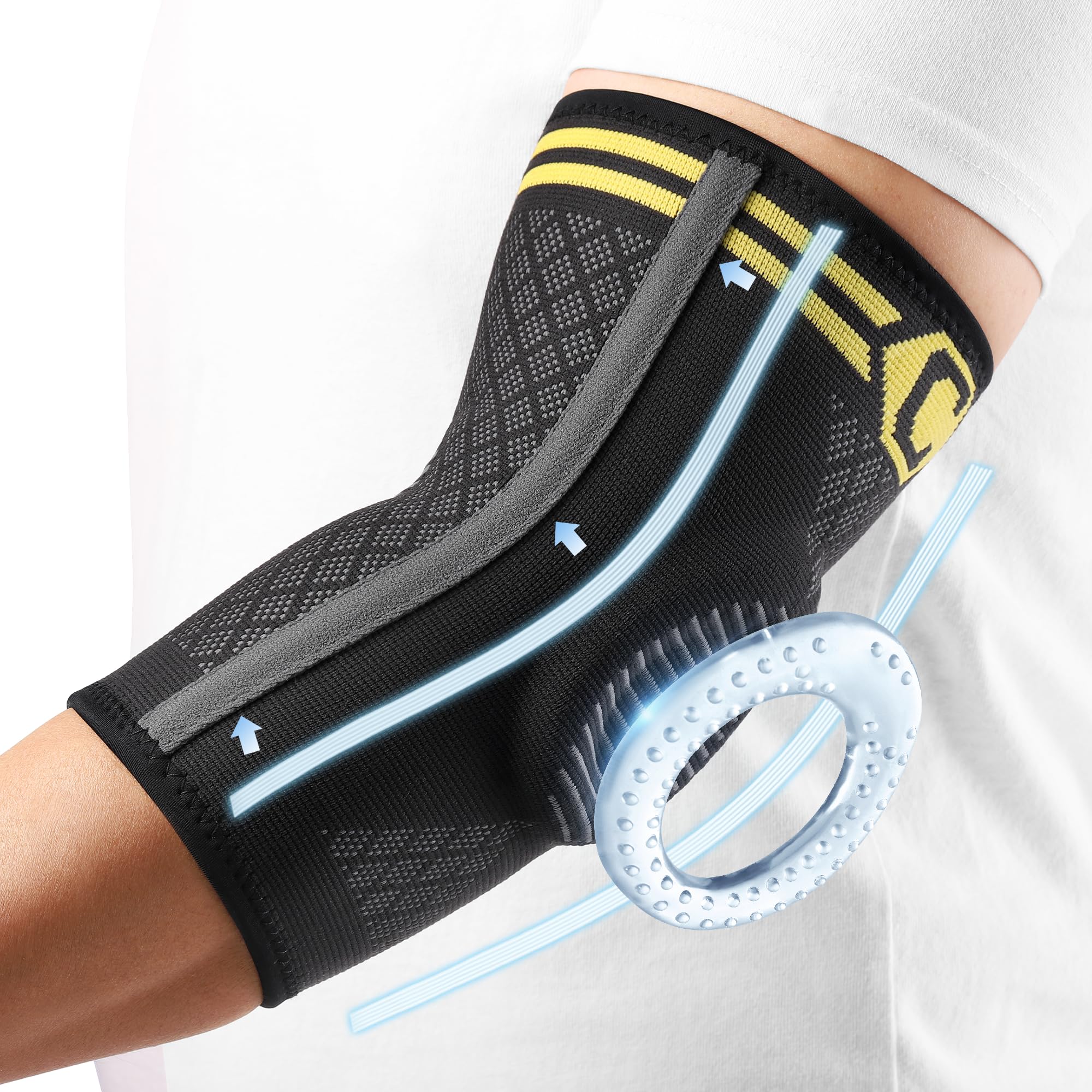 We have satisfied the quality of our product and service 24 months.And if you have any questions, please contact us, we will offer you a satisfactory solution in 24 hours.Versatile for everyone: elbow bandage for various activities, from everyday occasional use to intensive physical activity Ellenbogen bandage tennis arm keeps your elbow actively and comfortably while you work, train, cook, train in the gym or clean the house Regardless of whether you are athletes or office workers or suffer from elbow complaints, the elbow saver against tendonitis is suitable for you.Support and protection: The bandage distributes the pressure evenly around the elbow, promotes blood circulation and ensures good pressure Ellenbogen bandages women men for activities that require repeated arm movements, such as tennis, golf, baseball, volleyball Increase your performance with Cambivo elbow bandage.Comfortable fabric: Due to 3D knitting technology, the elbows bandages men women are light, breathable and soft The tight and formal bandage elbow ensures joint stability without restricting their mobility Moisturizing arm Sleeve to keep your arm dry Ellbogen bandage with high elasticity ensures safe seat without wrinkles or abrasions Stretchable for easy tight and undress.Targeted pain relief: Cambivo elbow bandage has a silicone pad around the elbow and two PMMA stabilizers on the inside and outside Tennis arm offers targeted support and superior stability to help relieve the tennis arm and golf arm and to alleviate tendonitis, arthritis and swelling.ZUFRIEDENHEIT-Wir haben die Qualität unserer Product und Service 24 Monaten verpflichtet. Und wenn Sie irgendwas Fragen haben, wenden Sie bitte an uns, wir werden Ihnen eine zufriedenstellende Lösung in 24 Stunden anbieten. Vielseitig einsetzbar für jedermann: Ellbogenbandage für verschiedene Aktivitäten, vom alltäglichen Gelegenheitsgebrauch bis hin zu intensiver körperlicher Betätigung Ellenbogenbandage Tennisarm hält Ihren Ellenbogen aktiv und bequem, während Sie arbeiten, trainieren, kochen, im Fitnessstudio trainieren oder das Haus putzen Egal, ob Sie Sportler oder Büroangestellter sind oder unter Ellenbogenbeschwerden leiden, der Ellbogenschoner gegen Sehnenscheidenentzündung ist für Sie geeignet. Unterstützung und Schutz: Die Bandage verteilt den Druck gleichmäßig um den Ellenbogen, fördert die Blutzirkulation und sorgt für einen guten Druck Ellenbogen Bandagen Damen Herren für Aktivitäten, die wiederholte Armbewegungen erfordern, wie Tennis, Golf, Baseball, Volleyball steigern Sie Ihre Leistung mit CAMBIVO Ellenbogenbandage. Bequemer Stoff: Durch die 3D-Stricktechnologie ist die Ellenbogen Bandagen Herren Damen leicht, atmungsaktiv und weich die enge und formschlüssige Bandage Ellenbogen sorgt für Gelenkstabilität, ohne Ihre Beweglichkeit einzuschränken feuchtigkeitsableitende Arm Sleeve, um Ihren Arm trocken zu halten Ellbogen Bandage mit hoher Elastizität sorgt für sicheren Sitz ohne Faltenbildung oder Abschürfungen dehnbar für einfaches An- und Ausziehen. Gezielte Schmerzlinderung: CAMBIVO Ellenbogenbandage verfügt über ein Silikonpolster um das Ellenbogen und zwei PMMA-Stabilisatoren an der Innen- und Außenseite Tennisarm Bandage bietet gezielte Unterstützung und überlegene Stabilität, um bei der Entlastung des Tennisarms und Golferarms zu helfen und Sehnenentzündung, Arthritis und Schwellung zu lindern.CAMBIVO 2x Ellenbogenbandage Herren Damen, Tennisarm Bandage mit Gelpolster und Seitenstabilisatoren, Bandage Ellenbogen für Schmerzlinderung bei Tennisarm, Golferarm, Sehnenentzündungen M Schwarz gelb