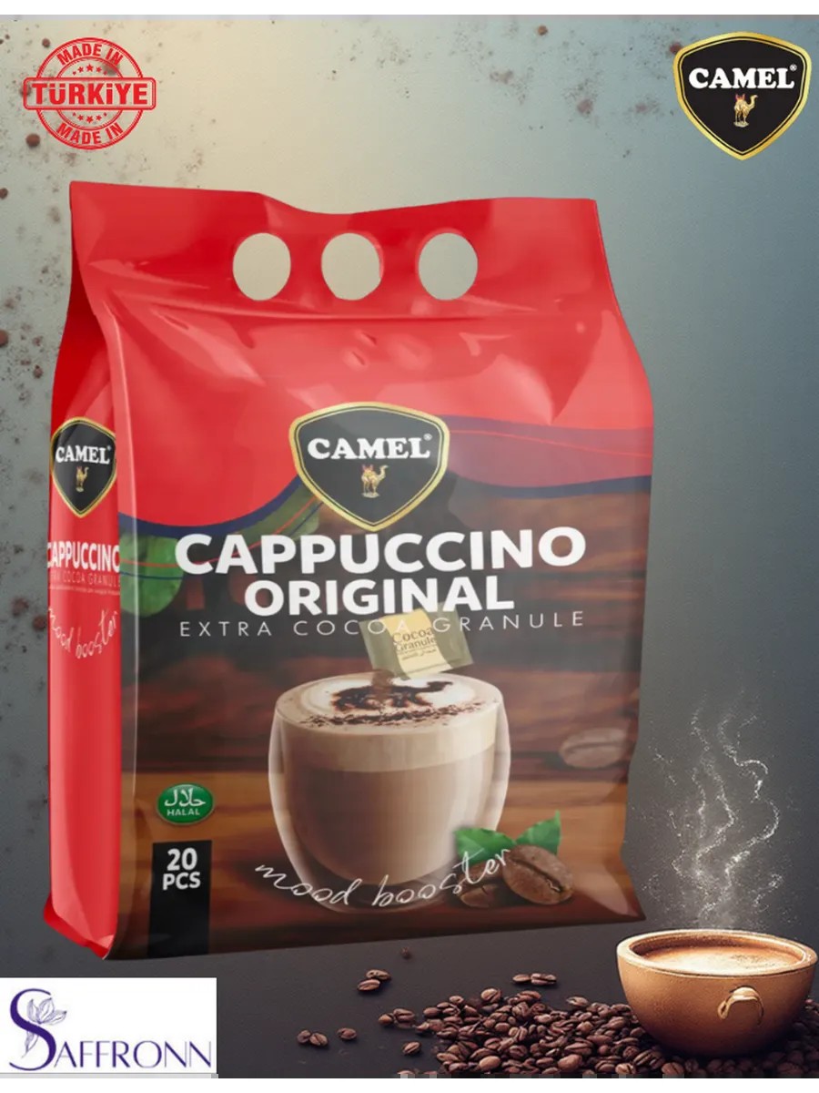 Сamel - турецкий бренд, известный во всем мире своим высококачественным растворимым кофе. Уникальные условия выращивания кофейных зерен, инновационный подход и система контроля качества Camel позволяют заварить чашку по-настоящему вкусного кофе с неповторимым ароматом. Растворимый кофе капучино от турецкого производителя чайных напитков Camel extra choco granule. Насыщенный аромат и богатый вкус.