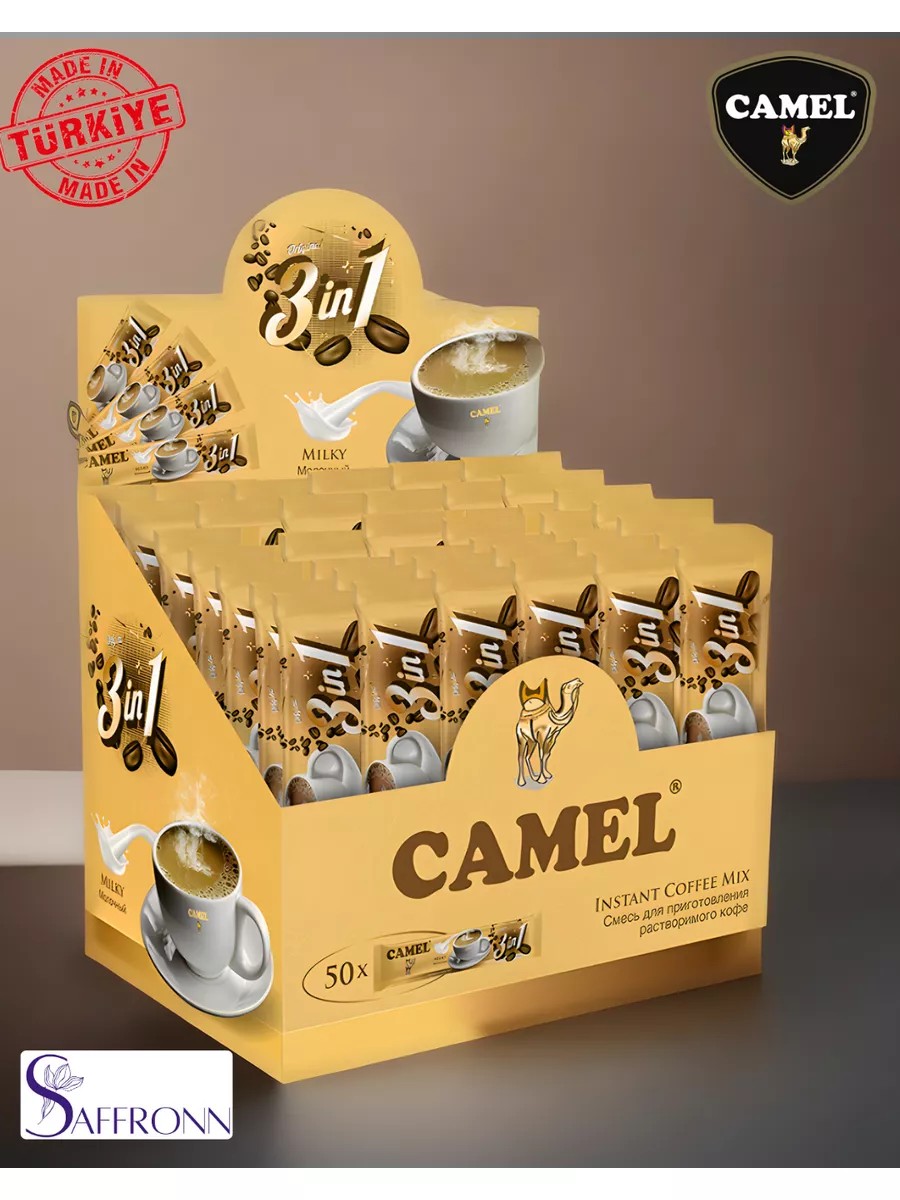 Camel 3 в 1 оригинальный молочный кофе - это вкусный и практичный напиток, который вы можете приготовить с помощью одной чашки горячей воды. Этот продукт содержит сахар, сливки для кофе, растворимый кофе, какао-порошок и ароматизатор. Он дарит вам неповторимый вкус и аромат кофе. Camel 3 в 1 оригинальный молочный кофе - это марка, произведенная и продаваемая в Турции, которая дает вам уверенность в качестве. Camel 3 в 1 оригинальный молочный кофе - это кофейный опыт, который вы можете наслаждаться в любое время дня.