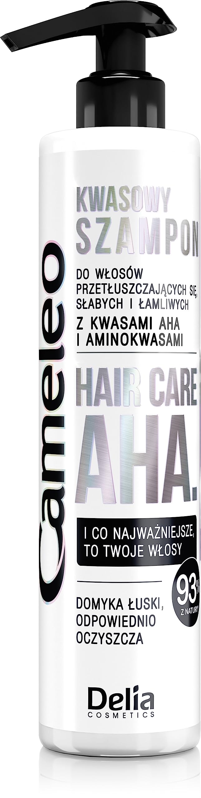 Cameleo - AHA Hair Care - Shampooing acide - Cheveux gras, faibles et cassants - Ferme les cuticules des cheveux - Nettoie en profondeur - Acides aminés - 250 ml