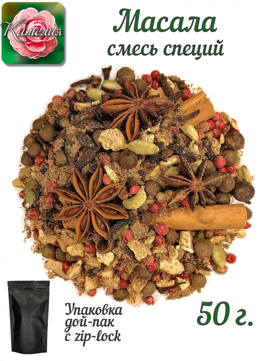 Masala is a magical bouquet of spices for a warming drink. Bright red pepper imparts a soft heat and stimulates metabolism. Aromatic anise seeds aid digestion and impart sweet notes. Noble cardamom infuses the taste with freshness and improves heart function. Black pepper adds a piquant flavor and improves circulation. Healing ginger root warms and strengthens the immune system. Spicy cloves have antibacterial properties and create a depth of aroma. Warm nutmeg calms the nervous system and adds refined flavor. Fragrant cinnamon regulates blood sugar levels and creates a festive mood. To reveal the full palette of flavors, pour boiling water over the mixture and let it steep for 5-7 minutes to make a fragrant tea. Add milk and honey to taste. For a coffee version, mix the spices with ground coffee before brewing. This versatile blend will transform ordinary tea drinking into a ritual of pleasure. The rich flavor and healing properties of spices will provide warmth and comfort. The awakening aroma will fill your home with a cozy atmosphere. Visit our store - Camellia Tea Company - and explore our wide range of products. White tea is light and fresh. Chrysanthemum and sage improve metabolism. Nutmeg and cardamom: spices for a rich flavor. Oranges, lemons, and their zest are rich in ascorbic acid. Parsley and mustard: an oasis of health. Licorice and birch leaves bring lightness. Mango tea is a sweet and pleasant drink. Rosebuds, rosemary, and chamomile are beneficial for stress relief. Turmeric and bamboo fiber promote digestion. Pineapple, mango, and papaya are exotic fruits. Thyme tea is a light drink that helps you relax. Green leaf mate tea provides an energy boost. Berry tea is a gift with a rich flavor. Strawberries and cranberries are vitamins for metabolism. Elecampane and string will bring calm. Count Orlov, soursop with a hint of bitterness. Echinacea and sweet clover are a natural medicine chest. A mixture of seeds and Rhodiola rosea are tonics. Cornflowers, heather, and helichrysum are essential oils. Poppy and curry: with an oriental aroma. A bold fruit with the sweet taste of fresh fruit. Spirulina and chia are a source of protein. Raspberry, mint, and rose improve breathing. Tea with wild berries is a drink with a sweet and tart taste. Chickpeas and leeks contain a lot of fiber. Ginger tea has a piquant and rich aroma. Potato flakes and lemon verbena are rich in antioxidants. For improved respiratory function, mulled wine, masala, and sage. Kiwi and lemon are beneficial acids. Strengthening the immune system – crowberry and Icelandic moss. Burdock and chaga are known for their medicinal properties. Sea buckthorn and dried rowan berries strengthen the immune system. Barberry, hawthorn, and wild strawberry are berries that strengthen the body. Madras peas and chili peppers add a piquant flavor. You'll find all this and much more in our store!