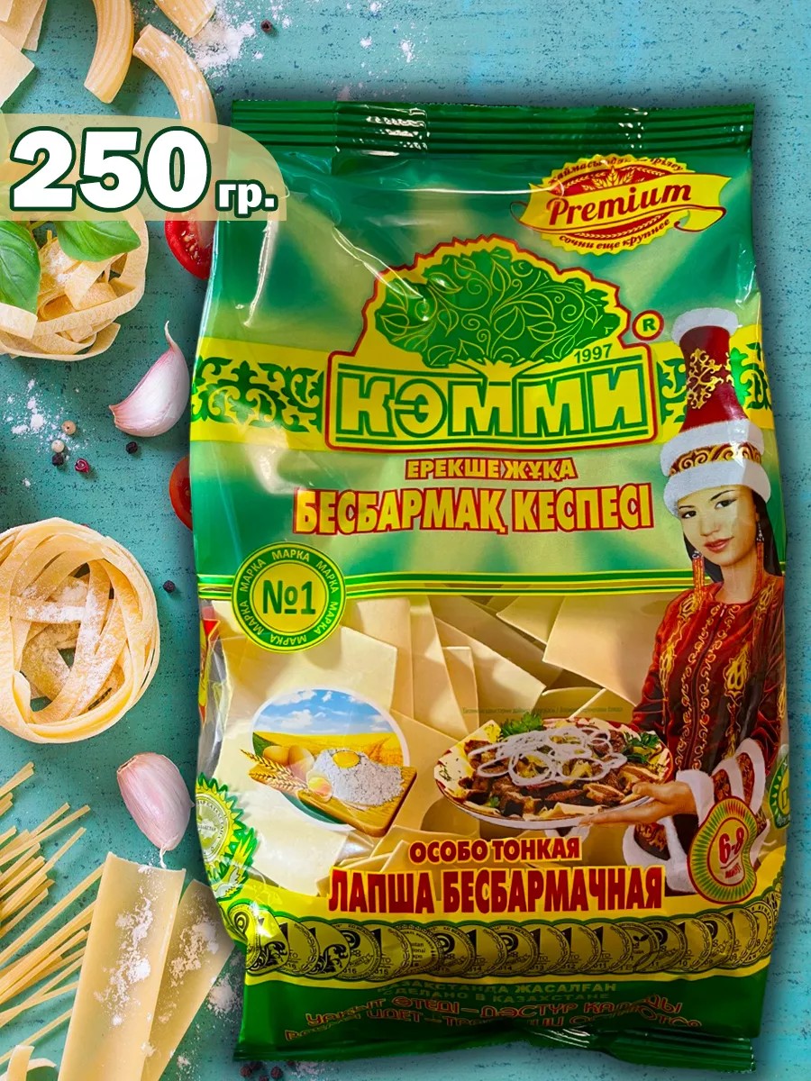 "Бесбармак" или "Бешбармак"- одно из самых изысканных блюд казахской, киргизской, башкирской национальной кухни и других народов, пользующееся общей любовью и являющееся первым блюдом праздничного стола. Лапша бесбармачная не разваривается и по своим качествам не уступает лапше, приготовленной в домашних условиях! Лапша бешбармачная Кэмми 250г яичная - это вкусное и питательное блюдо, которое не оставит равнодушным ни одного гурмана. Эта лапша изготовлена из высококачественной муки и яиц, что придает ей особенный вкус и аромат. Благодаря уникальному сочетанию ингредиентов, каждый глоток этой лапши наполняет ощущением полноты и насыщает организм необходимыми для нормального функционирования веществами. Лапша бешбармачная Кэмми 250г яичная отлично сочетается с традиционным казахским блюдом - бешбармаком, создавая идеальное сочетание мягкой, вкусной лапши и нежных кусочков мяса. Попробуйте эту лапшу и насладитесь вкусом настоящего бешбармака в уютной обстановке вашего дома!