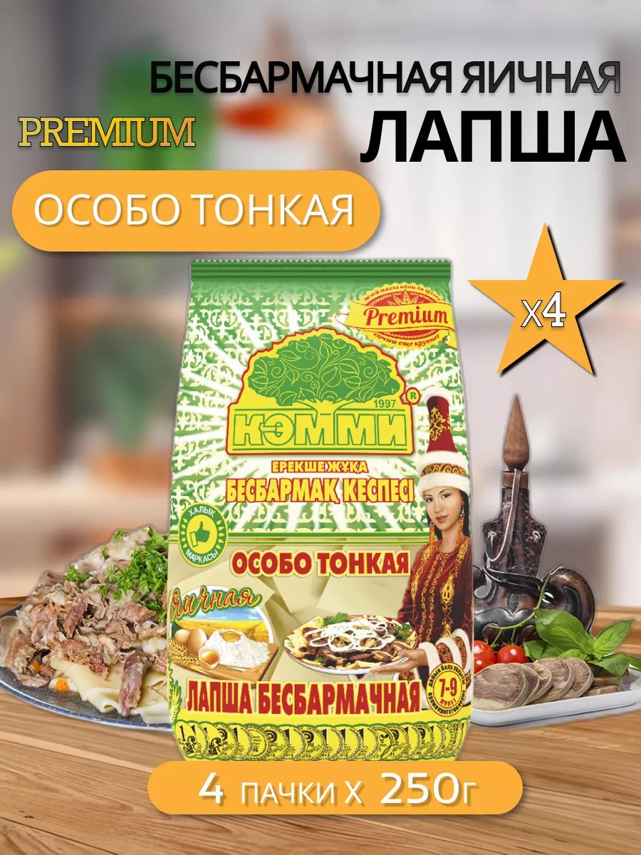 | Комплектация | Лапша бесбармачная 250г Кэмми - 4 шт |