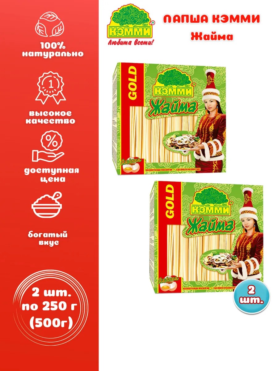 | Комплектация | Лапша Кэмми Жайма Голд, 2 шт. по 250 г |