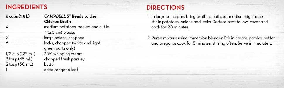 Campbell's Ready to Use Chicken Broth is prepared right here in Canada using only quality ingredients and all natural flavours. Our broth is seasoned to perfection for a rich, authentic flavour.That's what makes it a pantry must-have for creating the enjoyable weeknight recipes you can find at cookwithcampbells website or as the base of your own homemade soup.