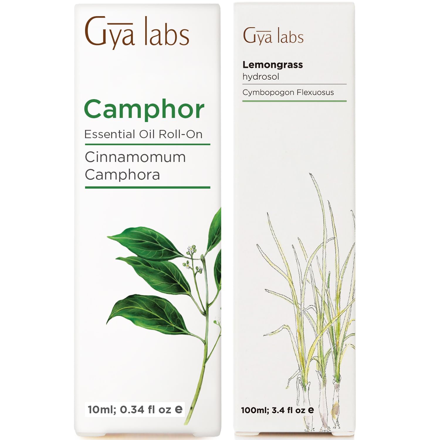 Camphor Roll On (0.34 fl oz) & Lemongrass Hydrosol (3.4 fl oz) Set - Essential Oils Aromatherapy Roll On with Essential Oil Set - Gya Labs