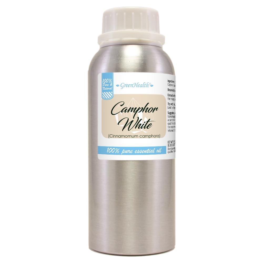 Camphor White Essential Oil – 8 fl oz – Aluminum Bottle w Locking Cap – 100 Pure Essential Oil – GreenHealthRevitalize your senses with GreenHealth Camphor White Essential Oil, a 100 pure and undiluted essential oil known for its refreshing, penetrating aroma. Sourced from premium-quality Cinnamomum camphora, this oil is steam-distilled to ensure maximum potency and purity.Product Details:Size: 8 fl oz (237 mL)Packaging: Durable aluminum bottle with a secure locking cap to preserve freshness and prevent leaks.100 Pure Undiluted: No fillers, additives, or synthetic ingredients.How to Use: Aromatherapy: Add a few drops to a diffuser for a refreshing and purifying atmosphere. Massage Skincare: Dilute with a carrier oil for topical application. DIY Cleaning: Mix with water or vinegar for a natural disinfectant.Experience the pure, natural power of Camphor White Essential Oil with GreenHealth—your go-to brand for high-quality, globally sourced essential oils!