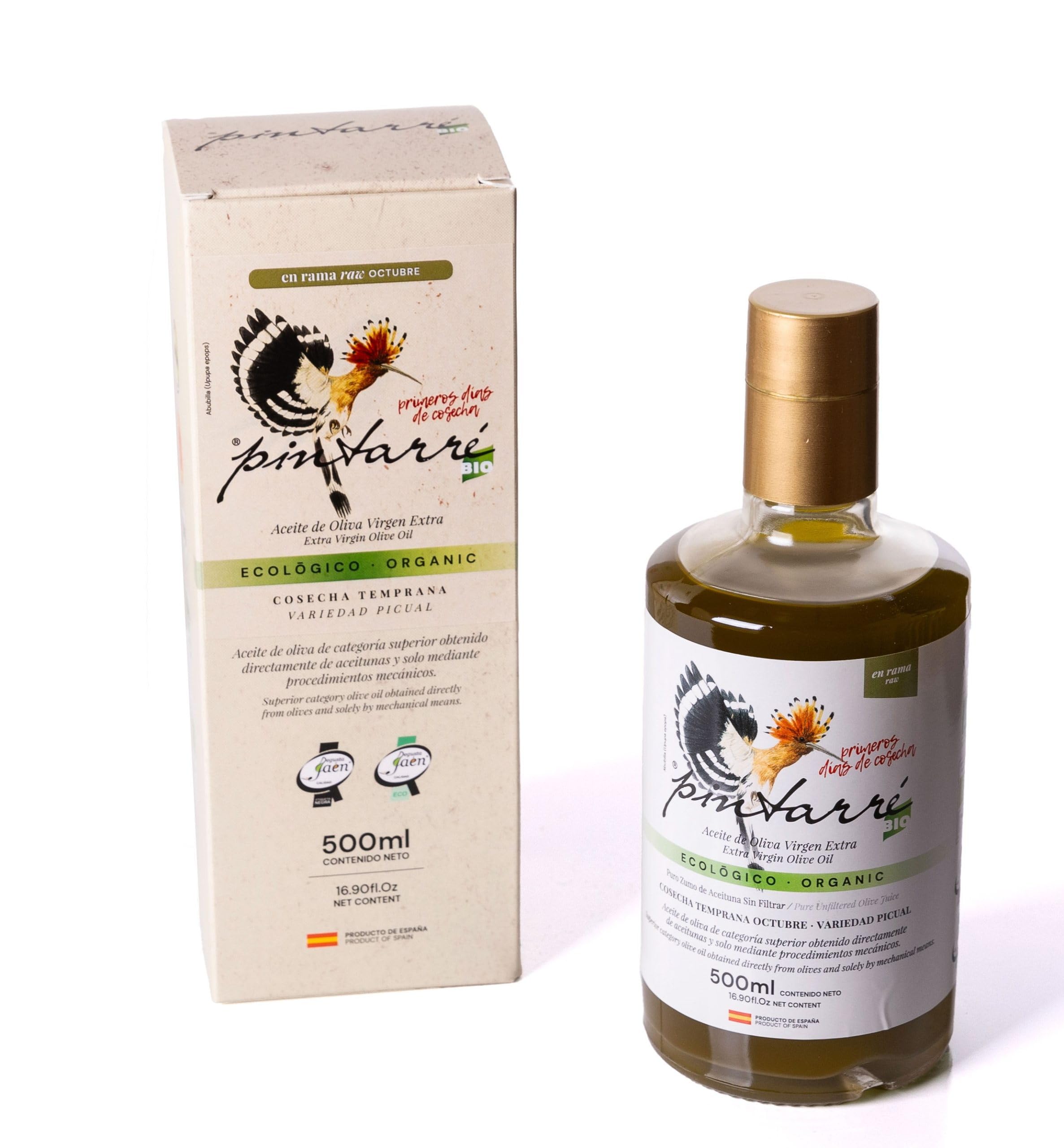 Extra virgin olive oil, unfiltered, produced in Jaén with olives of the Pique variety, harvested in October. Protected under the protected designation of origin Sierra Magina and awarded the Degusta Jaenen quality mark. The nose emphasizes its freshness with green qualities and the presence of aromas and nuances reminiscent of freshly cut grass and tomatoes. The striking green profile gives the whole freshness, while the high resistance of its nuances is also reminiscent of artichoke, tomatoes and olive leaves. On the palate it stands out for its fruity properties and for its bitter and spicy strength of very balanced medium intensities. Pairing: There is a very large choice of cheese and yogurt, with which a perfect combination can be achieved. It also enhances the taste of salads, creams, pyrranas and meat. Gives an unparalleled texture to sweets and cakes with dark chocolate, while the fruit gives a fresh yet tasty touch. INGREDIENTS Olive oil INSTRUCTIONS FOR USE For optimal use, store in a cool, dry place and protect from direct sunlight. Do not use if the stopper is damaged or missing. Do not overheat to avoid burns or smoke. Do not use for long frying. Keep out of reach of children. Contains olive oil, which can cause allergies to nuts in people who are allergic to nuts. See morePintarré Olijfolie, eerste persing, ongefilterd, biologisch, vroege oogst, oktober, 500 ml Extra olijfolie van de eerste persing, ongefilterd, geproduceerd in jaén met olijven van de variëteit Pique, die in oktober zijn geoogst. Onder de beschermde oorsprongsbenaming Sierra Magina beschermd en bekroond met het keurmerk Degusta Jaenen. De neus benadrukt zijn frisheid met groene eigenschappen en de aanwezigheid van aroma's en nuances die doen denken aan vers gesneden gras en tomaten. Het opvallende groene profiel geeft het geheel frisheid, terwijl de hoge bestendigheid van zijn nuances ook doet denken aan artisjok, tomaten en olijfblad. In de mond onderscheidt hij zich door zijn fruitige eigenschappen en door zijn bittere en kruidige sterkte van zeer uitgebalanceerde gemiddelde intensiteiten. Koppeling: Er is een zeer grote keuze aan kaas en yoghurt, waarmee een perfecte combinatie kan worden bereikt. Het versterkt ook de smaak van salades, crèmes, pyrranen en vlees. Geeft een ongeëvenaarde textuur bij snoep en cake met donkere chocolade, terwijl het fruit een frisse en tegelijkertijd lekkere touch geeft. INGREDIËNTEN Olijfolie GEBRUIKSAANWIJZING Voor optimaal gebruik op een koele, droge plaats bewaren en tegen direct zonlicht beschermen. Niet gebruiken als de stop beschadigd is of ontbreekt. Niet oververhit raken om brandwonden of rook te voorkomen. Niet gebruiken voor lang frituren. Buiten het bereik van kinderen houden. Bevat olijfolie, die bij mensen die allergisch zijn voor noten kan veroorzaken. Meer bekijken