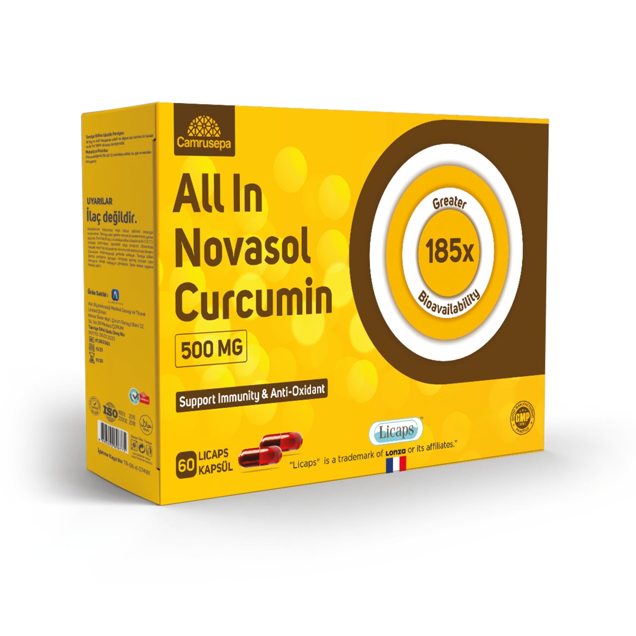 Camrusepa All in Novasol Curcumin Herbal Supplement Advanced Curcumin Formula Enhanced Absorption Licaps Capsules Supports Antioxidant Immune & Cellular Health | 60 Capsules