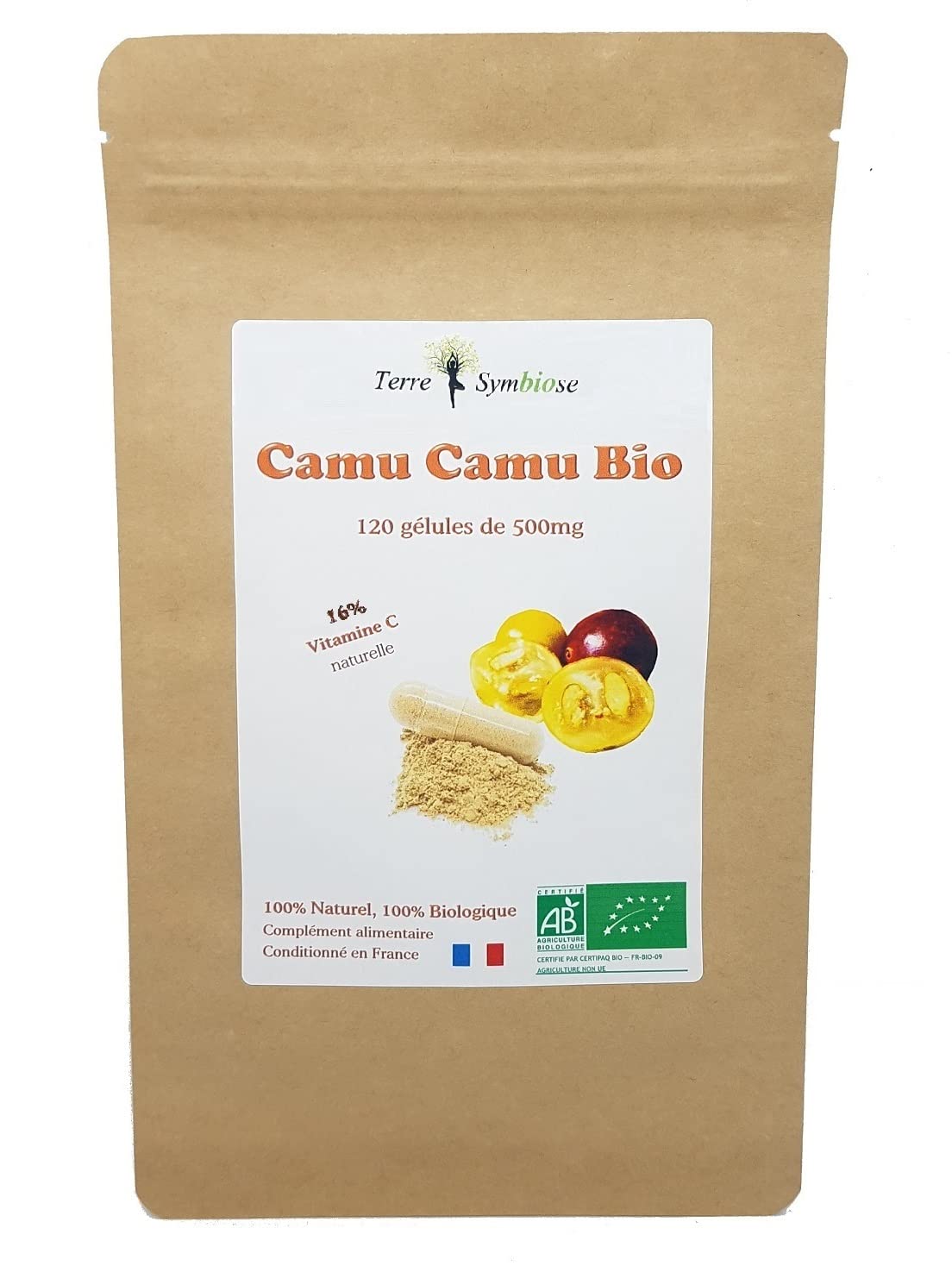 : Organic Camu Camu, 16 Natural Vitamin C Content, Additive-Free, 100 Natural. Features: Pack of 120 capsules, Total net weight 73.2g. Composition: 500mg Vegan Vegetable Capsule of concentrated 30:1 Organic Camu Camu Powder (Myrciaria dubio), including 84mg of natural Vitamin C. Origin: Peru – . Product of non-EU organic farming. Certified by FR-BIO-09. Packaged in France in our workshop. What is CAMU CAMU? Camu Camu is a small fruit harvested in the Peruvian . Light orange in color and about the size of a cherry, it naturally contains a high amount of Vitamin C. Once harvested, it provides more than 2700mg of Vitamin C per 100g of fruit. Its Vitamin C content is higher than that of acerola or any other fruit. The concentration process at less than 45 C increases the concentration of the beneficial properties of this fruit by a factor of 30, thus raising the vitamin content to 16 of the finished product. What are its properties? Compared to an orange, this fruit contains on average: 40 times more Vitamin C, 10 times more Iron, 3 times more Niacin, 2 times more Riboflavin (Vitamin B2), and 50 more Phosphorus. It also contains: Potassium, Calcium, Zinc, Bitter substances, Amino acids (valine, leucine, and serine), and Essential oils such as limonene and pinene. Good to know: Camu Camu is a superfood has no toxic effects has no side effects when consumed within the recommended dosage can be eaten like any other food and is a powerful natural antioxidant, anti-inflammatory, and antimicrobial. Camu Camu is the best natural source of Vitamin C. Ingredients: Food supplement, 500mg vegan vegetable capsule of concentrated 30:1 organic Camu Camu powder (Myrciaria dubio), including 84mg of natural Vitamin C. Origin: Peru – . P.when('A').execute(function(A) { A.on('a:expander:toggle_description:toggle:collapse', function(data) { window.scroll(0, data.expander. expander[0].offsetTop-100) }) }) Directions: 1 capsule daily with breakfast. Safety Warning: Before use, consult your doctor if you have a medical condition, are pregnant, or breastfeeding, or if you experience any adverse reactions. store in a cool, dark, and dry place. This food supplement should not be used as a substitute for a varied diet. Not recommended for children. Do not exceed the recommended dose. Keep out of reach of young children. See moreNatural Vitamin C. SUPERFOOD. 100 Organic Camu Camu.Description du produit Camu Camu Biologique Teneur naturelle de 16 Vitamine C Sans additif, 100 Naturel Caractéristiques : Sachet de 120 gélules, Poids net total 73.2g. Composition : Gélule végétale Vegan de 500mg de Poudre Camu Camu Bio Myrciaria dubio concentrée 30:1 dont 84 mg de Vitamine C naturelle. Origine Pérou – ie. Produit issu de l'agriculture biologique non-UE. Certifié par FR-BIO-09. Conditionné en France dans notre atelier. Qu'est-ce-que le CAMU CAMU ? Le Camu Camu est un petit fruit qui se récolte en ie Péruvienne. De couleur orange clair, et de la taille d'une cerise, il contient naturellement une grande quantité de vitamine C. Une fois récolté, il fournit plus de 2700 mg de Vitamine C pour 100gr de fruit. Sa teneur en vitamine C est supérieure à celle de l'acérola ou de tout autre fruit. Le procédé de concentration à moins de 45 C, permet d'augmenter la concentration des biens faits de ce fruit à 30 fois, montant ainsi la teneur en vitamine à 16 du produit fini. Quelles sont ses propriétés ? Comparé à une Orange, ce fruit contient en moyenne : 40 fois plus de Vitamine C 10 fois plus de Fer 3 fois plus de Niacine 2 fois plus de Riboflavine (Vitamine B2) 50 de plus de Phosphore Mais aussi, du : Potassium Calcium Zinc Substances amères Acides aminés (valine, leucine et serine) Huiles essentielles comme le limonène et le pinène Bon à savoir : Le CAMU CAMU est un SUPERFOOD n'a aucun effet toxique n'a aucun effet secondaire dans la limite des doses recommandées peut être consommé comme n'importe quel autre aliment est un puissant Antioxydant, Anti-inflammatoire, Anti-microbien naturel Le Camu Camu est la meilleure source naturelle de vitamine C. Ingrédients Complément aliment, Gélule végétale Vegan de 500mg de Poudre Camu Camu Bio Myrciaria dubio concentrée 30:1 dont 84 mg de Vitamine C naturelle. Origine Pérou – ie. P.when('A').execute(function(A) { A.on('a:expander:toggle_description:toggle:collapse', function(data) { window.scroll(0, data.expander. expander[0].offsetTop-100) }) }) Mode d'emploi 1 gélule par jour au petit déjeuner. Avertissement De Sûreté Avant sa consommation, parlez-en à votre médecin si vous avez un problème de santé, êtes enceinte, ou allaitez ou si vous avez des réactions indésirables. A conserver dans un endroit frais, sombre et sec. Ce complément alimentaire ne doit pas être utilisé pour remplacer un régime varié. Déconseillé aux enfants. Ne pas dépasser la dose recommandée. Tenir hors de portée des jeunes enfants. Voir plusVitamine c naturelle. SUPERFOOD. 100 Camu Camu Biologique.Camu Camu Bio - 120 gélules de 500mg