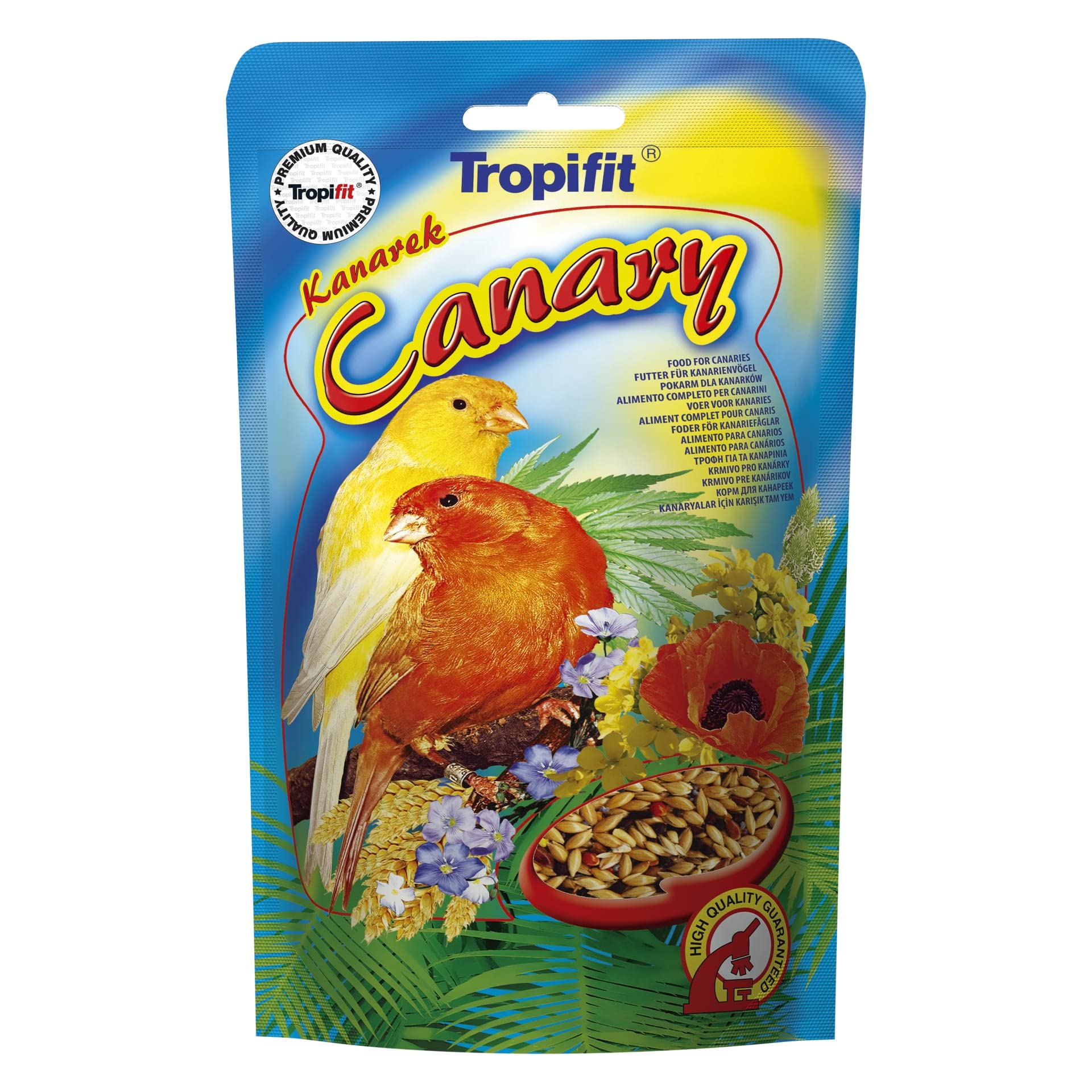 Mixture of grains and seeds for all varieties of canaries. Balanced and varied composition: • covers the nutritional needs of canaries • provides the right amount of minerals and vitamins • provides a source of unsaturated fatty acids • stimulates birds to sing • encourages them to breed. We only use controlled grains and seeds of the best quality, which ensures the health of your birds. INGREDIENTS Complete feed for canaries. Composition: canary seed 57 , rapeseed 20 , hulled oats 5 , linseed 5 , agrimony seed, hemp seed, niger seed, poppy seed 1 , extruded wheat. Additives: colorings. Analytical constituents: crude protein 18.3 , crude fat 18.5 , crude fiber 9.0 , moisture 12.0 . DIRECTIONS FOR USE FEEDING: Ensure canaries have access to food and water at all times. Change food and water daily. Supplement vitamins and minerals with Nektar-vit and Mello-vit for canaries or red canaries. varied and diverse diet stimulates birds' singing and increases their willingness to breed. Ensures good growth, development, and beautiful plumage of birds. Food with selected cereals and grass seeds for all varieties of canaries. Mélange de céréales et de graines pour toutes variétés de canaris. Composition équilibrée et diversifiée: • couvre les besoins nutritifs des canaris • fournit la quantité adéquate de minéraux et vitamines • fournit une source d'acides gras insaturés • stimule les oiseaux à chanter • les encourage à se reproduire. Nous n'employons que des céréales et graines contrôlées de la meilleure qualité, ce qui assure la santé de vos oiseaux. INGRÉDIENTS Aliment complet pour canaris. Composition: graine d'alpiste des Canaries 57 , graine de colza 20 , avoine décortiquée 5 , graine de lin 5 , graine d'aigremoine, graine de chanvre, graine de niger, graine de pavot 1 , blé extrudé. Additifs: colorants. Constituants analytiques: protéine brute 18,3 , matières grasses brutes 18,5 , cellulose brute 9,0 , humidité 12,0 . MODE D'EMPLOI ALIMENTATION: assurez-vous que les canaris ont accès à la nourriture et à l'eau à tout moment. Changez quotidiennement la nourriture et l'eau. Suppléez aux vitamines et minéraux avec Nektar-vit et Mello-vit pour canaris ou canaris rouges. une alimentation variée et diversifiée stimule le chant des oiseaux et augmente leur volonté de se reproduire. assure la bonne croissance, le développement et le beau plumage des oiseaux. nourriture avec des céréales sélectionnées et des graines de graminées pour toutes les variétés de canaris.