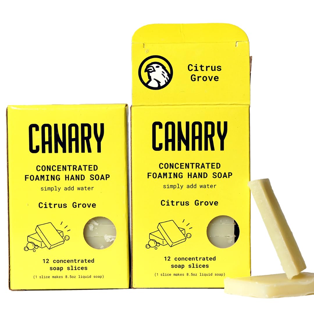 Canary Foaming Hand Soap Bars - Refillable Zero Waste Hand Wash Concentrate with Coconut Oil - All Natural Moisturizing Organic Non Toxic (Citrus Grove (makes 24 bottles of liquid soap)) Citrus Grove (24 Soap)