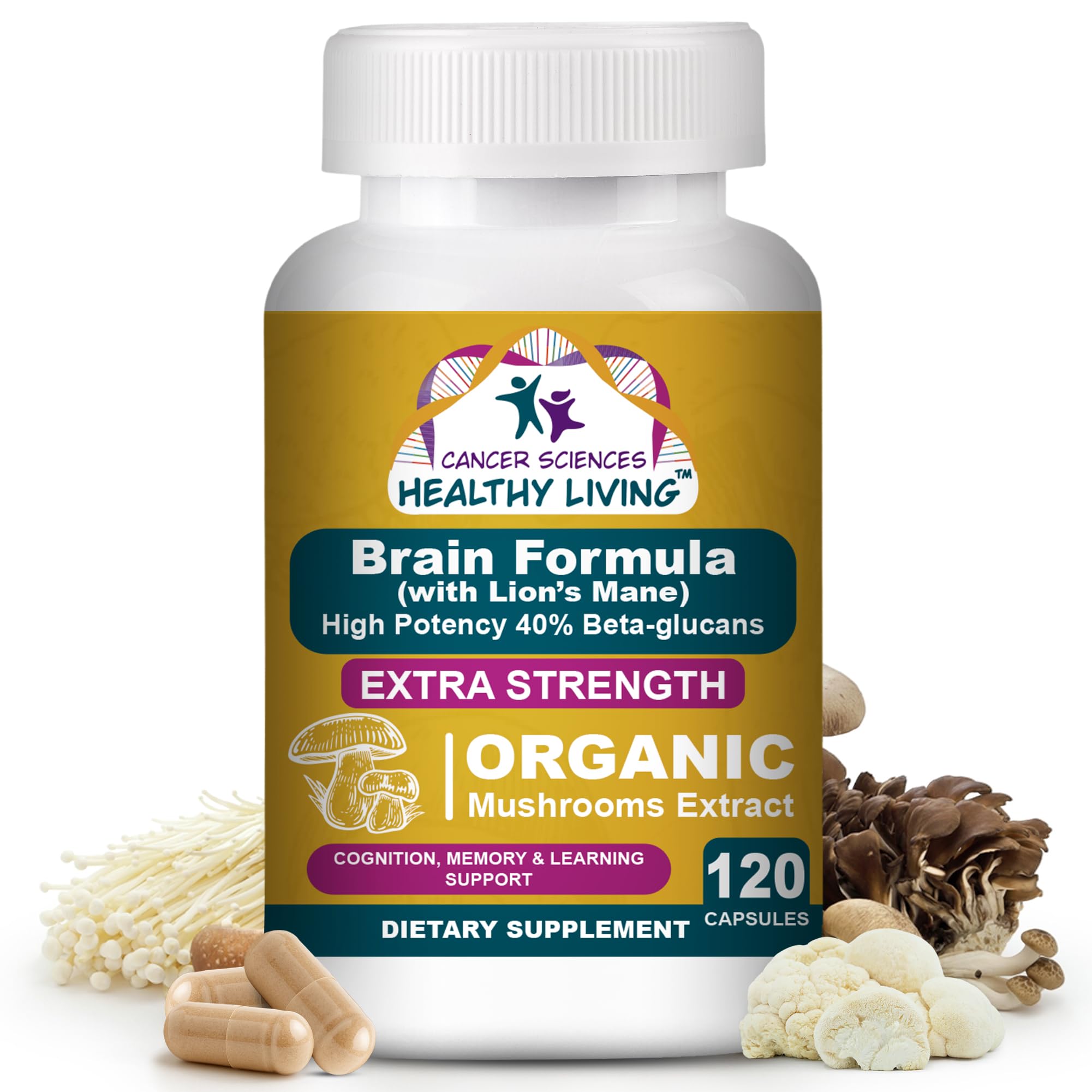 , , - – Made with 100 pure USDA certified organic fruiting body only mushrooms, free from grains or fillers. Our Memory Help Supplements and Focus Supplement easily twist-open capsules to mix with drinks or meals for a convenient, scooping- and mess-free way to enjoy mushroom benefits. – Beta-glucans, polysaccharides, and triterpenes stimulate immune cells like NK cells and macrophages, fortifying your defenses. Full of antioxidants like terpenoids, sterols, phenols and many others that provide daily defenses from free radicals and cell oxidative stress. A holistic approach to better health and focus factor. - – These Brain Supplements for Memory and Focus developed using mushrooms studied in peer-reviewed scientific publications for cognitive and immune benefits. Trusted by Cancer Sciences Healthy Living, our supplements deliver results you can trust. We don't cut corners—we use a double extraction method (water alcohol) to ensure that bioactive compounds beyond beta-glucans are effectively extracted into our supplements. - , – Our Memory Booster Supplement packed with a powerful dose of 1,500 mg of premium-grade organic mushrooms extract that contains 600 mg of beta-glucans per serving, delivering the highest potency for enhanced brain and immune system support. We don't cut corners—we use a double extraction method (water alcohol) to ensure that bioactive compounds beyond beta-glucans are effectively extracted into our supplements. – Unlock your brain's full potential with this organic mushroom extract blend Memory Enhancer for Adults Seniors designed to support memory, focus, and learning. Featuring 4 scientifically backed mushrooms for optimal brain health. Combine with our Wellness Formula for even greater benefits.