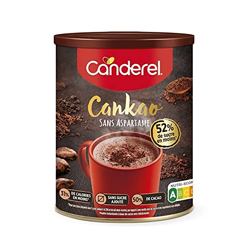 : Cankao offers all the pleasure of chocolate with 50 fewer calories. Ingredients: Cocoa powder: 53.75 (fat-reduced cocoa powder: 51 , cocoa butter: 10-12 , emulsifier: SOY lecithin non-GMO), bulking agent: polydextrose, sweetener: WHEAT fiber (GLUTEN-FREE ingredient), sweetener: aspartame (0.9 contains a source of phenylalanine), vanilla flavoring. Cocoa: 50 minimum. May contain traces of MILK. Directions for use: Dilute before consumption. Follow the package instructions for the correct ratio of product to use with water or other liquid. Safety Warning: Contains allergens (cocoa, vanilla). Dilute before consumption. Keep out of reach of young children. See more
