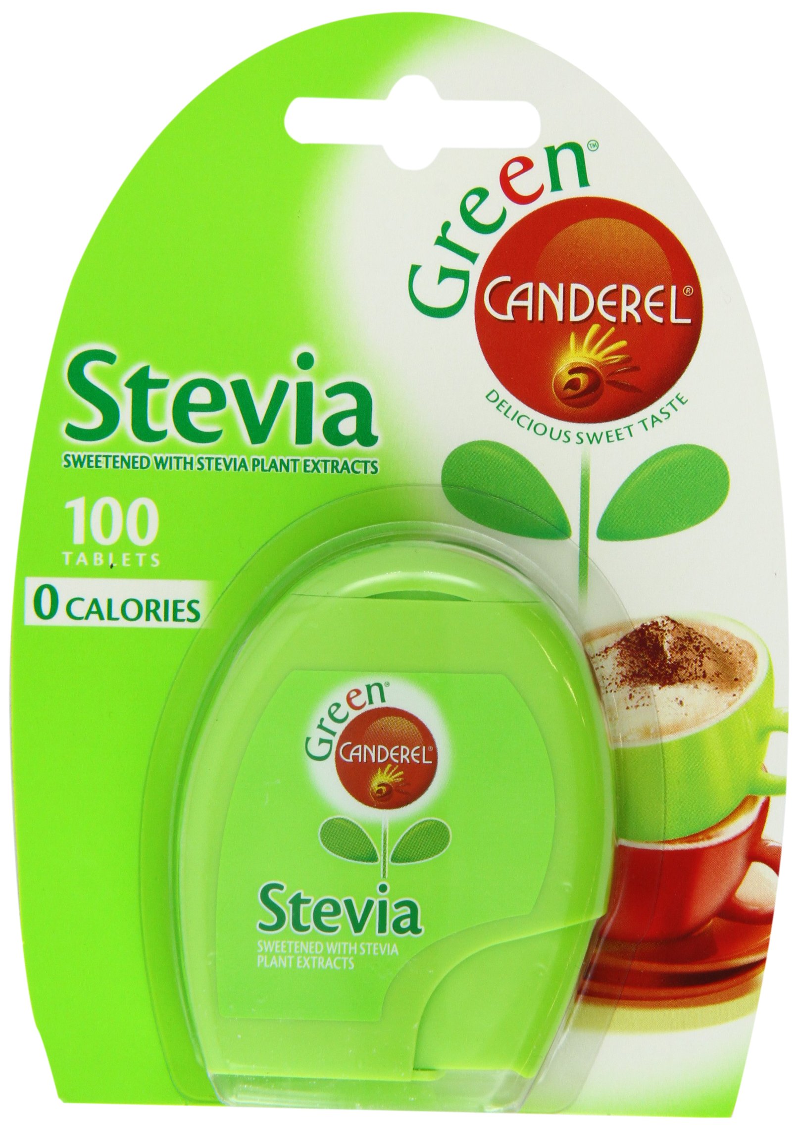 Canderel Green Tablets use the naturally sweet taste of Reb A, found in the Stevia leaf, to create a delicious zero calorie sweetener that's ideal for use in your hot drinks. These tablets are 200 times sweeter than sugar. These tablets are calorie free, which means replacing one teaspoon of sugar in your tea or coffee with Canderel Green will save you 20 calories. The handy dispenser makes them perfect for adding a delicious sweet taste without the calories, at home, at work or on the go. These tablets are suitable for diabetics as part of a balanced diet and for vegetarians as well.