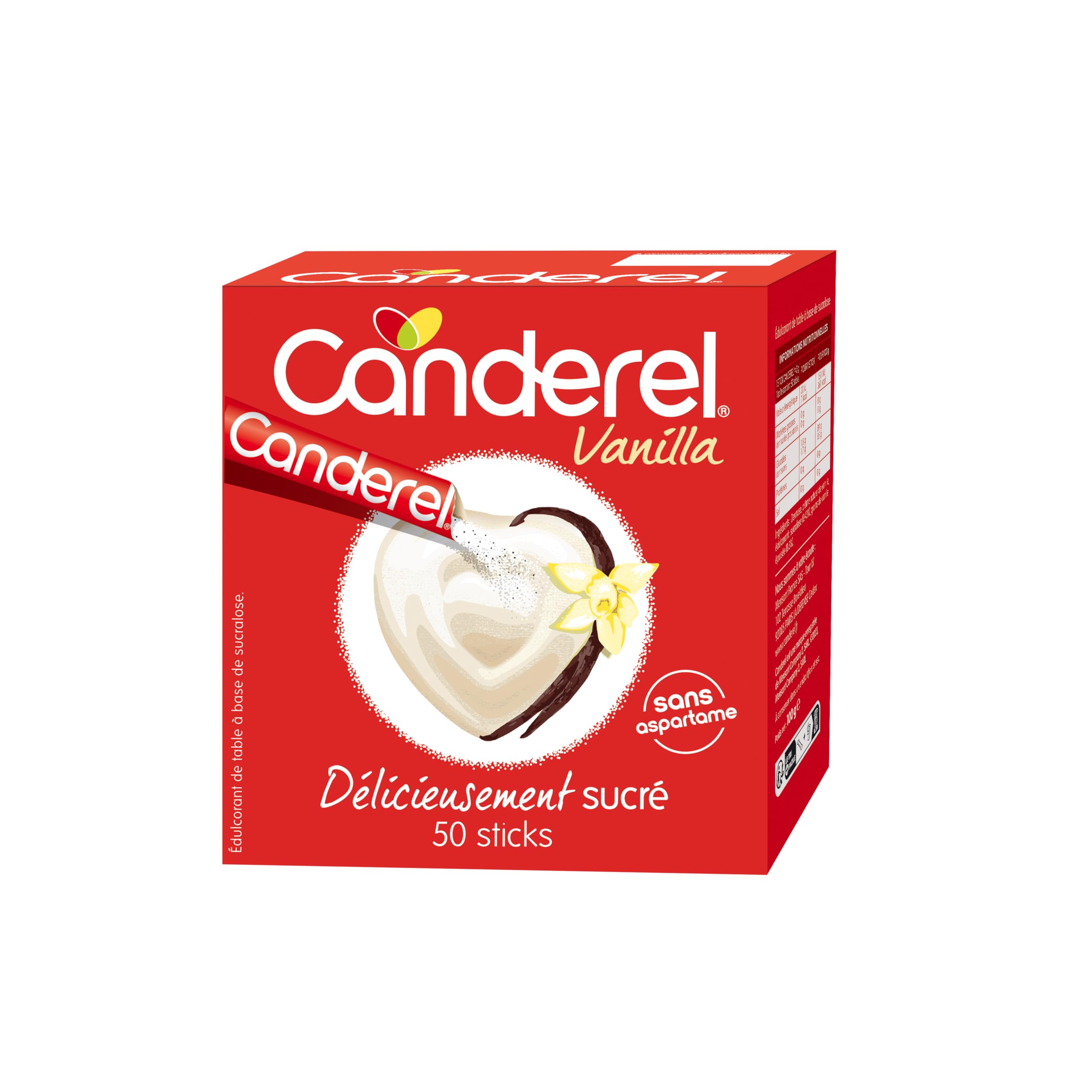 Notre alternative au sucre convient aux personnes diabétiques ou qui suivent un régime casher, vegan ou keto. Sucrez ce que vous voulez, où que vous soyez ! I Saupoudrez vos tartes et laitages, savourez une boisson chaude à la douceur vanillée …. Facile à doser, un stick Canderel Vanilla a le même pouvoir sucrant que deux cuillères de sucre avec seulement 7 calories !. Succombez aux sticks Vanilla de Canderel ! L'alliance subtile de l'arôme naturel de vanille de Madagascar et de la saveur unique du sucralose !. Avec Canderel, retrouvez le bon goût sucré que vous aimez tant ! Le secret ? Le sucralose, au goût si proche du sucre, en plus il contient seulement 7 calories par stick !.