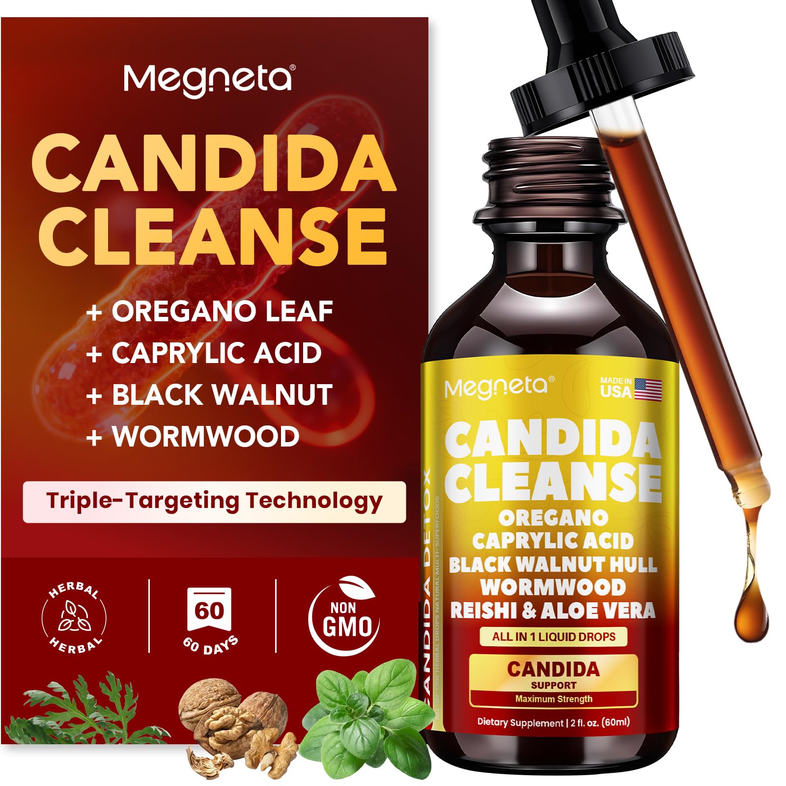 Candida Cleanse Detox with Triple-Targeting Technology All-in-1 Synergy Formula with Caprylic Acid Oregano Black Walnut & Wormwood Yeast Detox Gut Health Digestive & Immune Health (2 Fl Oz) 2 Fl Oz (Pack of 1)