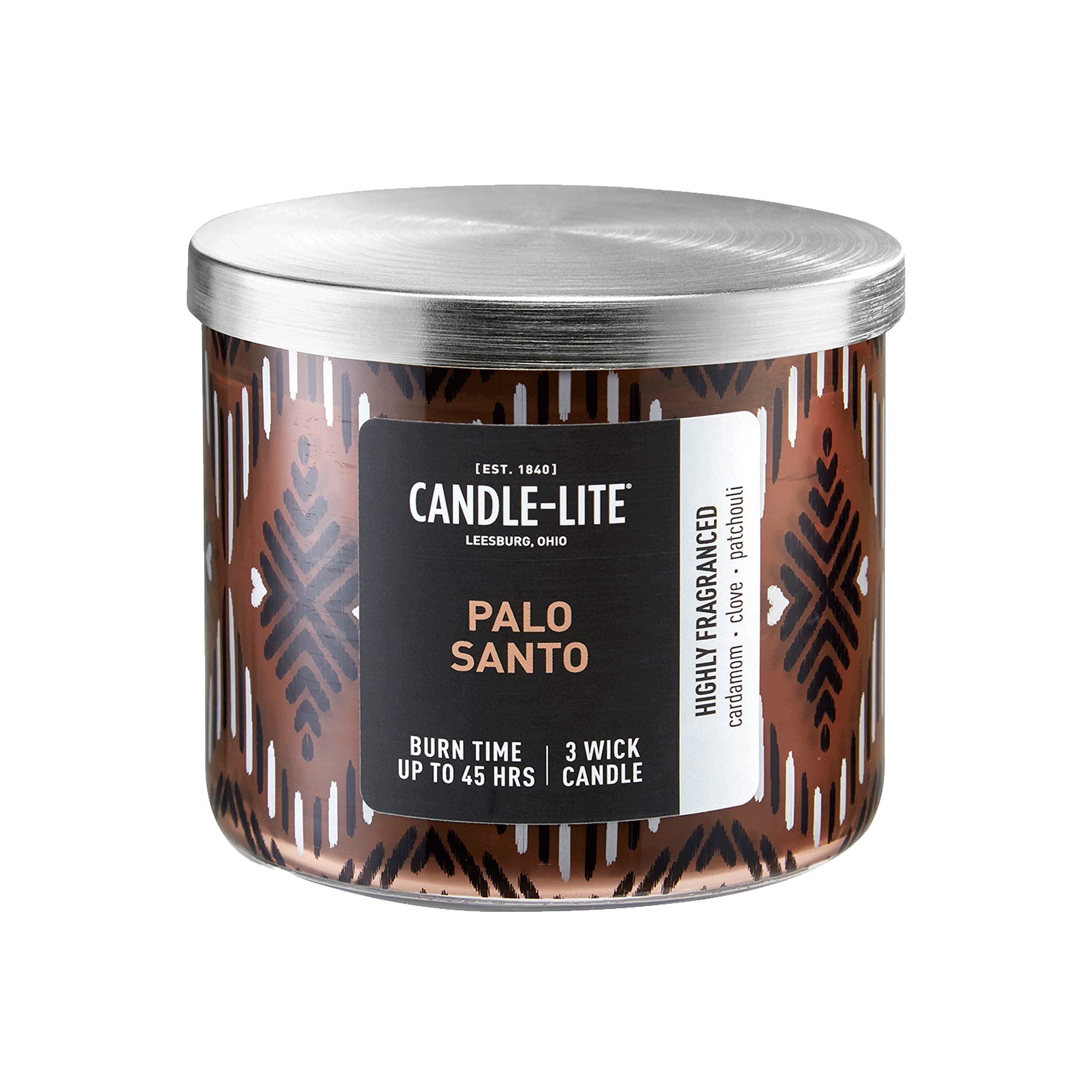 Candle-lite Everyday by Candle-lite Company is America’s #1 candle. Purify & cleanse your space with this Palo Santo scented candle.This woody, spicy fragrance is warmed with ceremonial spices. frankincense, clove, amber and smooth patchouli. Measuring 3.75"H x 4.17"D, this Candle-lite Palo Santo candle is the perfect size to place in any room. Enjoy new fragrances no matter where you are with this 14 oz. large candle. Whether you’re working in your home office, enjoying game night with friends, or curling up on the couch for a movie night, this candle is perfect for any occasion.This single wick candle has a 100% cotton wick, is lead free, and burns up to 90 hours. Not only does this wax candle accent your home décor, but it releases a calming fragrance while maintaining a consistent burn for you to enjoy. Always remember to candle with care and burn within sight. Keep candles away from children, pets, and things that can catch fire. Stop use when .5” of unmelted wax remains and extinguish every 4 hours for cooling. Trim the candle wick to .25” prior to each use. Lighting America’s hearts and homes since 1840, Candle-lite Company has been crafting quality candles in Ohio’s heartland for over 180 years. Create an inviting atmosphere with these candles for home scented with varied fragrances suitable for all the different rooms. Every Candle-lite product is 100% satisfaction guaranteed. Whether it's floral, fresh, fruity or gourmand, we have a fragrance for you.CANDLE-LITE COMPANY–Lighting America’s hearts and homes since 1840, Candle-lite Company has been crafting quality candles in Ohio’s heartland for over 180 years. Whether it's floral, fresh, fruity or gourmand, we have a fragrance for you. CANDLE WITH CARE –Always remember to burn within sight and keep away from children, pets, and things that can catch fire. Stop use when .5” of unmelted wax remains and extinguish every 4 hours for cooling. Trim the candle wick to .25” prior to each use. PERFECT FOR ANY ROOM –Enjoy a rich fragrance in any room with this 14 oz. large candle. Whether you’re working in your home office or curling up on the couch for a movie night, this candle is perfect for any occasion. Packaging may vary. SINGLE WICK CANDLE–This Candle-lite Palo Santo candle has a single 100% cotton wick and burns up to 90 hours. Its fragranced candle wax not only accents your home décor but releases a calming scent while maintaining a consistent burn. AROMATHERAPY CANDLE–Explore the mystical Palo Santo woods and purify + cleanse your space. This woody, spicy fragrance is warmed with ceremonial spices. frankincense, clove, amber and smooth patchouli.