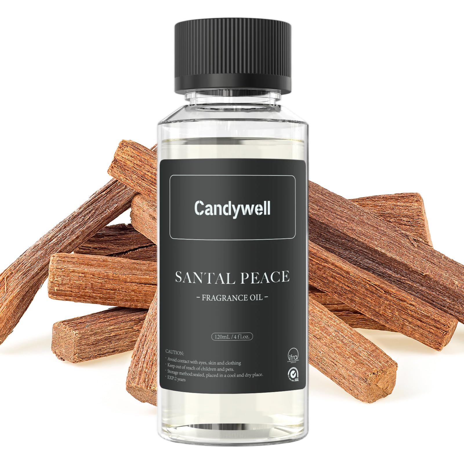 Candywell Hotel Diffuser Oil for Waterless Diffusers, Luxurious Relaxing Aromatherapy Scent Essential Oil with Cardamom, Cedar & Sandalwood, 4 Fl Oz, 120 ML, Santal Peace