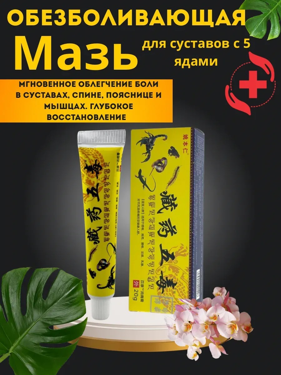 Мгновенное облегчение боли и глубокое восстановление. Уникальная формула мази разработана на основе традиционной восточной медицины и современных научных исследований. Благодаря комбинации 5 мощных природных ядов, средство обладает выраженным обезболивающим, противовоспалительным и согревающим действием. Мазь быстро проникает в глубокие слои кожи, улучшает кровообращение и устраняет дискомфорт в суставах, мышцах и позвоночнике.