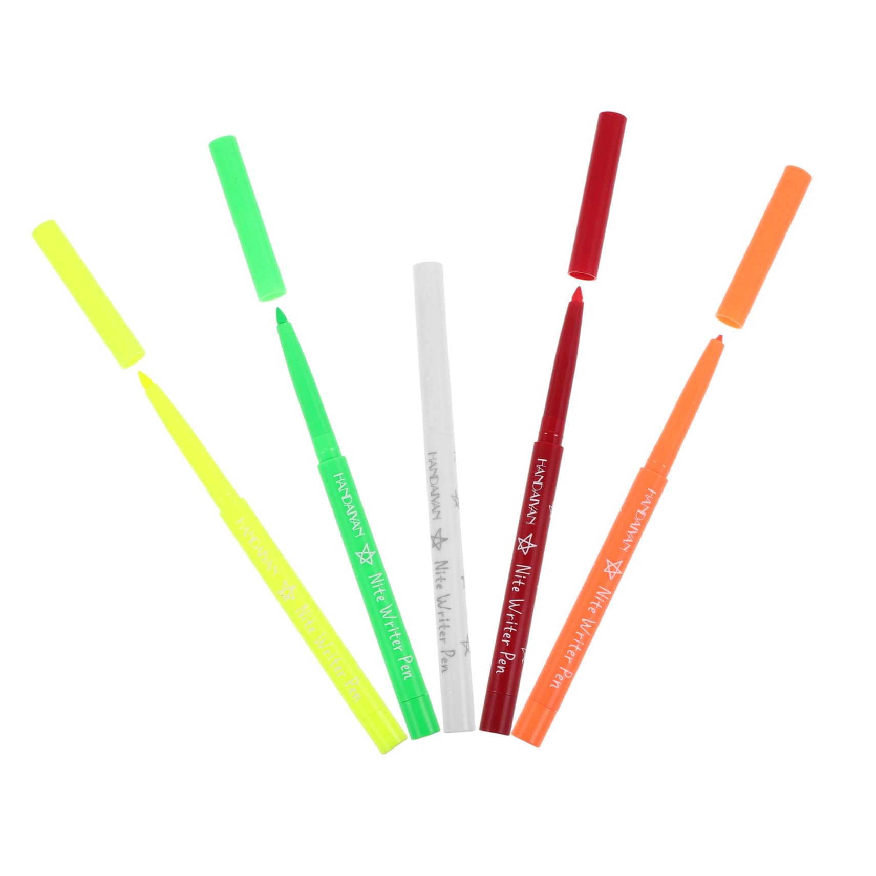 Package List 5 x pens Features -Color:Assorted Color eyeliner pen for women -Material:Plastic make up highlighter -Size:12.00X0.80X0.80cm 4.72X0.31X0 star eyeliner stamp. - This eyeliner is ideal for beginners and professional makeup, will bring you a different experience eye cosmetic pen. - Manufactured of durable and safe material, eyeliner pencil is safe to use, comfortable to hold and use fluorescence liner. - The eyeliner pencil come with appropriate size, making it easy to carry for you when travel fluorescence eyeliner pen. - The flexible tip brush and comfortable grip gives optimal control and easy, stable application eye liner pen. - You can easily to remove eyeliner in seconds with makeup remover, fast and clean, never worry about pigmentation portable eye makeup pen. Goods Description eye line makeup tool Features the simple design, very convenient to carry and use.eyeliner pen Made by plastic material, it is very safe to use.eye cosmetic pen The simple and fine color can help create a glamorous look.eye liner pencils This eyeliner pencil is a practical woman makeup eyeliner pen.stamp eyeliner The eyeliner pen provides a good makeup effectWoman eyeliner pen: manufactured of good and durable material, our eyeliner pen can dry fast and will not easily fade under the effects of water,women eyeliner pen. Fluorescence liner: you can use it as an eyeliner, bringing you lasting and natural eye line makeup, which is easy to use,eye line makeup pen. Make up highlighter: the pen supple and comfortable, which will not make you feel uncomfortable, easy to use,fluorescence eyeliner. Eye line pen: the eye lines drawn by our eyeliner will not easily fade, waterproof, highlight the eye,star eyeliner stamp. Fluorescence eyeliner pen: the pointed pen tip makes it easy to use, to help you to draw a natural and smooth eye line,eyeliner fluorescence.