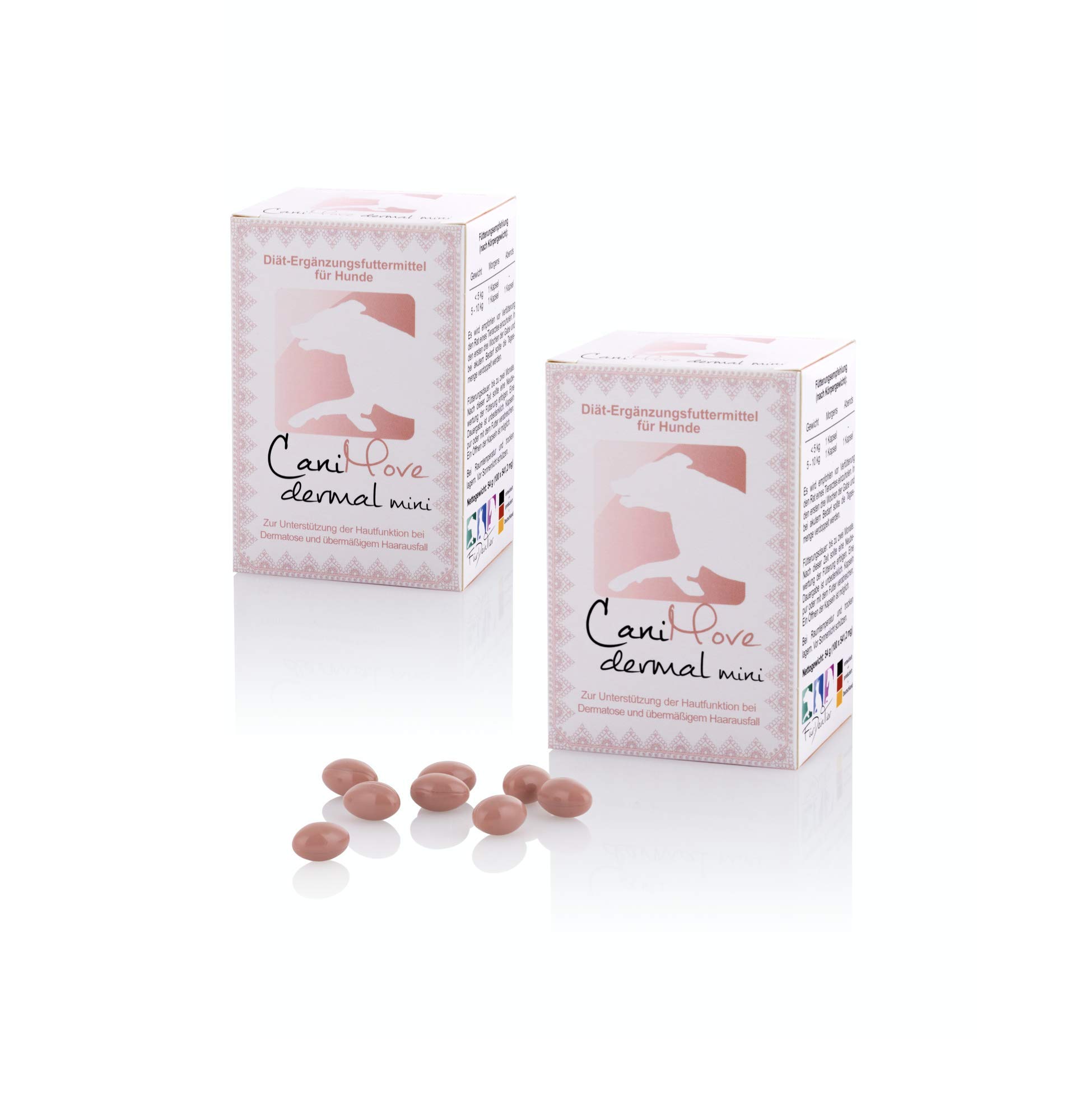 Dieses Bundle enthält 2 Packungen CaniMove dermal mini mit je 100 Kapseln. Nettomasse: 54 Gramm.