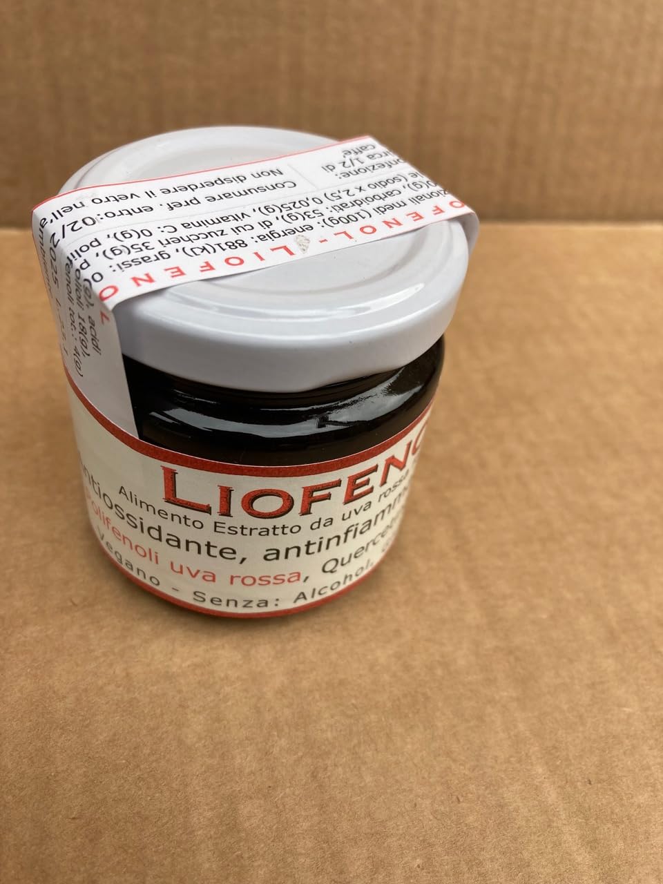 Extract of red grapes from fermented cultivation (organic cultivation), 2 boxes of red grape containers per kg of liophenolAntioxidant lining from fermented red grapes.Liofenol 70 ml – vriesgedroogde biologische druiven Extract van rode druiven uit gefermenteerde teelt (biologische teelt), 2 kisten rode druivenbakken per kg liofenolAntioxidant voering van gefermenteerde rode druiven.