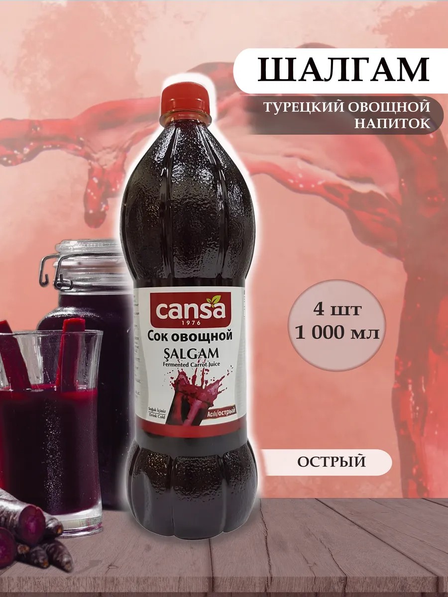 Традиционный турецкий напиток "шалгам", набор из 4 штук по 1000 мл., от известной турецкой компании "Cansa" — это уникальный турецкий овощной напиток, который идеально подойдет для тех, кто придерживается правильного питания и детокса.