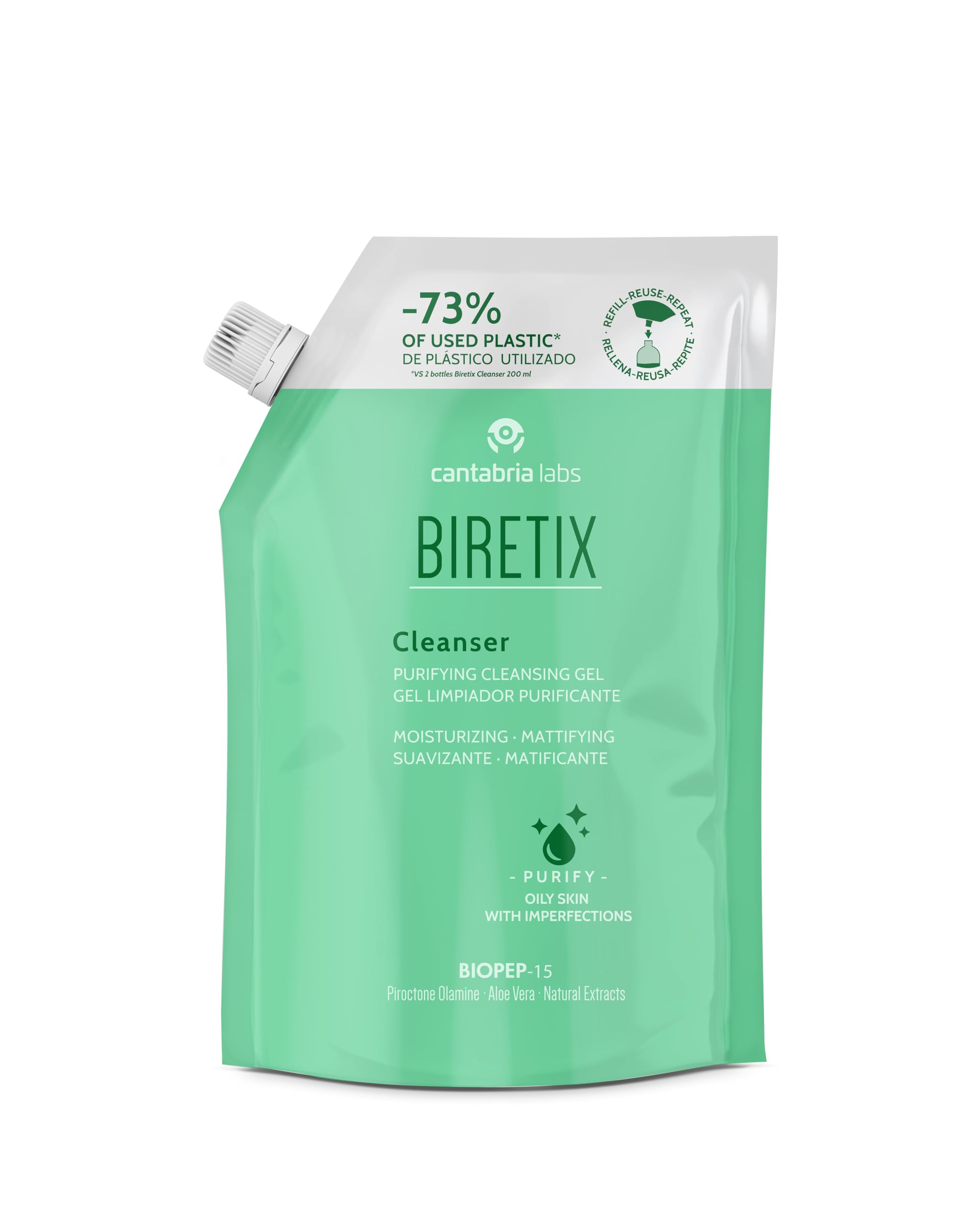 Cleansing cleansing gel for combination skin, oily and acne-prone skin SAFETY WARNING External use. Avoid contact with eyes and water membranesUse: Apply to damp skin in the morning and evening with a light massage. Leave on for 1-2 minutes and rinse with plenty of water. Moisturizing, mattifying and soft: thanks to its formula with BIOPEP 15 and enriched with soothing and antioxidant active ingredients that remove impurities without drying out the skin. - Suitable for daily use of oily, combination and acne-prone skin. Cleansing and cleansing cleanser: thoroughly cleanses the skin and removes excess sebum when the skin dries out.Cantabria Labs Biretix Cleanser Refill Actieve reinigingsgel, reinigend, 400 ml Reinigende reinigingsgel voor gemengde huid, vette en acne-gevoelige huid VEILIGHEIDSWAARSCHUWING Uitwendig gebruik. Vermijd contact met de ogen en watermembranenGebruik: 's ochtends en 's avonds door lichte massage op de vochtige huid aanbrengen. 1-2 minuten laten inwerken en met veel water uitspoelen. Hydraterend, matterend en zacht: dankzij de formule met BIOPEP 15 en verrijkt met verzachtende en antioxiderende werkzame stoffen die onzuiverheden verwijderen zonder de huid uit te drogen. - Geschikt voor dagelijks gebruik van vette, gemengde en acne-gevoelige huid. Reinigende en reinigende reiniger: reinigt de huid grondig en verwijdert overtollig talg wanneer de huid uitdroogt.