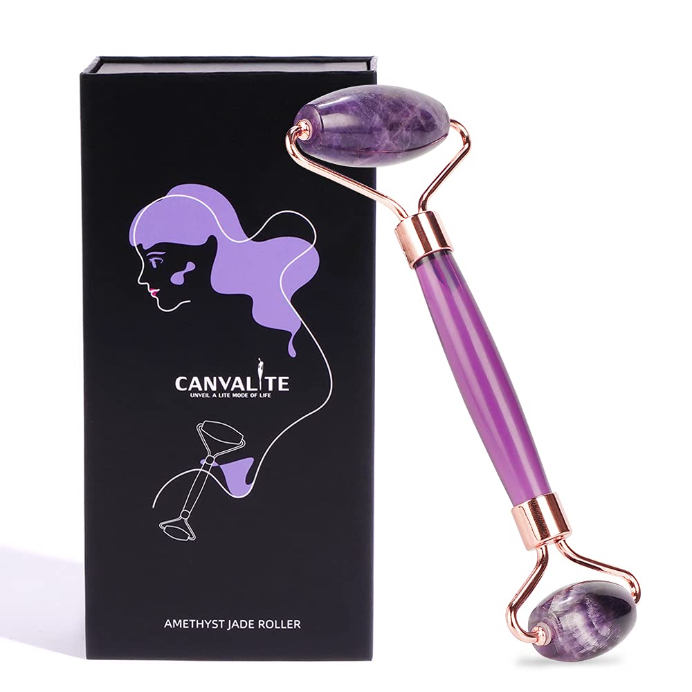 Canvalite Jade Roller for Face 100% Amethyst Natural Face Roller Skin Care Tools for Puffy Eyes Relief Anti Aging Face Massager for Women Reduce Wrinkles Dark Circles Fine Lines Jade Facial Roller