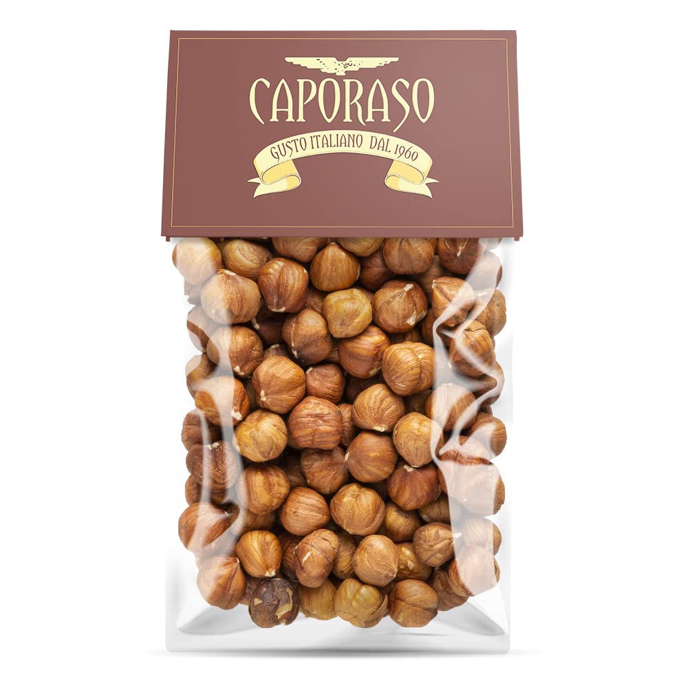 Caporaso brand natural hazelnuts, grown since 1960, are produced using the highest quality round hazelnut varieties from Italy. After cultivation, they are carefully selected and sifted by hand. These natural hazelnuts are ideal for those seeking the nutritional benefits found even in the hazelnut skin. Available in 500g or 1kg packs. The vacuum packaging perfectly preserves their crunch, flavor, and aroma. Average nutritional values per 100g: Energy 2764 kJ 670 kcal Fat 62g, of which saturates 4.5g Carbohydrate 8.2g, of which sugars 4.9g Fiber 9.4g Protein 15g. INSTRUCTIONS FOR USE Enjoy the hazelnuts in their natural state, including the skin, to fully benefit from their nutritional properties.