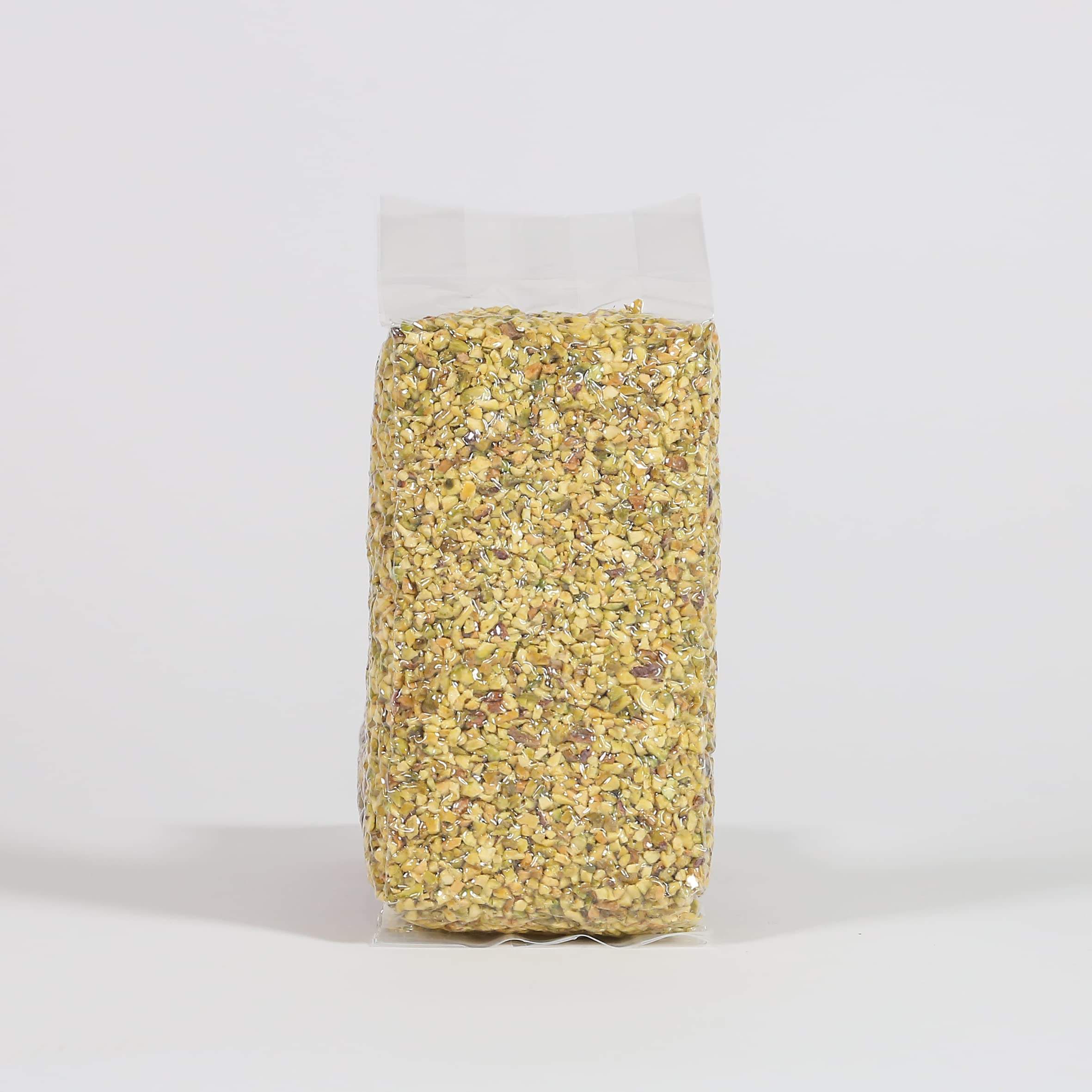 Pistachio kernels produced by a direct-grinding process. Our quality is guaranteed by traditional preservation and selection techniques we have been working with dried fruit since 1960. This product is perfect as a topping for savory dishes, or as a filling or topping for all kinds of cakes. Pistachios are among the most popular ingredients in cooking add a gourmet touch to your recipes. The product is vacuum-sealed in both the 500-gram and 1-kilogram sizes. Here is the nutritional information based on average values per 100 grams of product: Energy 2428 kJ 586 kcal Fat 46 g, of which saturates 5.6 g Carbohydrate 17 g, of which sugars 7.7 g Fiber 10 g Protein 21 g Salt 1.5 g. INSTRUCTIONS FOR USE Use directly as a filling or sealant in recipes.