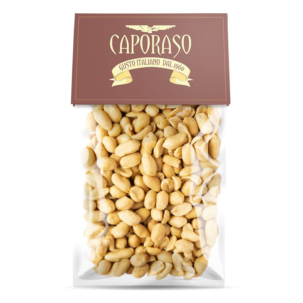 Vacuum-packed, hand-sealed peanuts available in 200-gram or 1-kilogram (kg) bags. Our product has been arriving from Caporaso since 1960 in its natural state, where the peanuts are carefully selected, roasted according to precise temperature standards, and then salted. The final product is a snack that will tantalize your taste buds, perfect as an afternoon treat or as an aperitif. Here is the nutritional information. Average values per 100g: Energy 585 kcal, Fat 49.66 grams (of which saturates 6.89 grams), Carbohydrate 21.51 grams (of which sugars 4.18 grams), Fiber 8 grams, Protein 23.68 grams, Salt 16.2 grams.