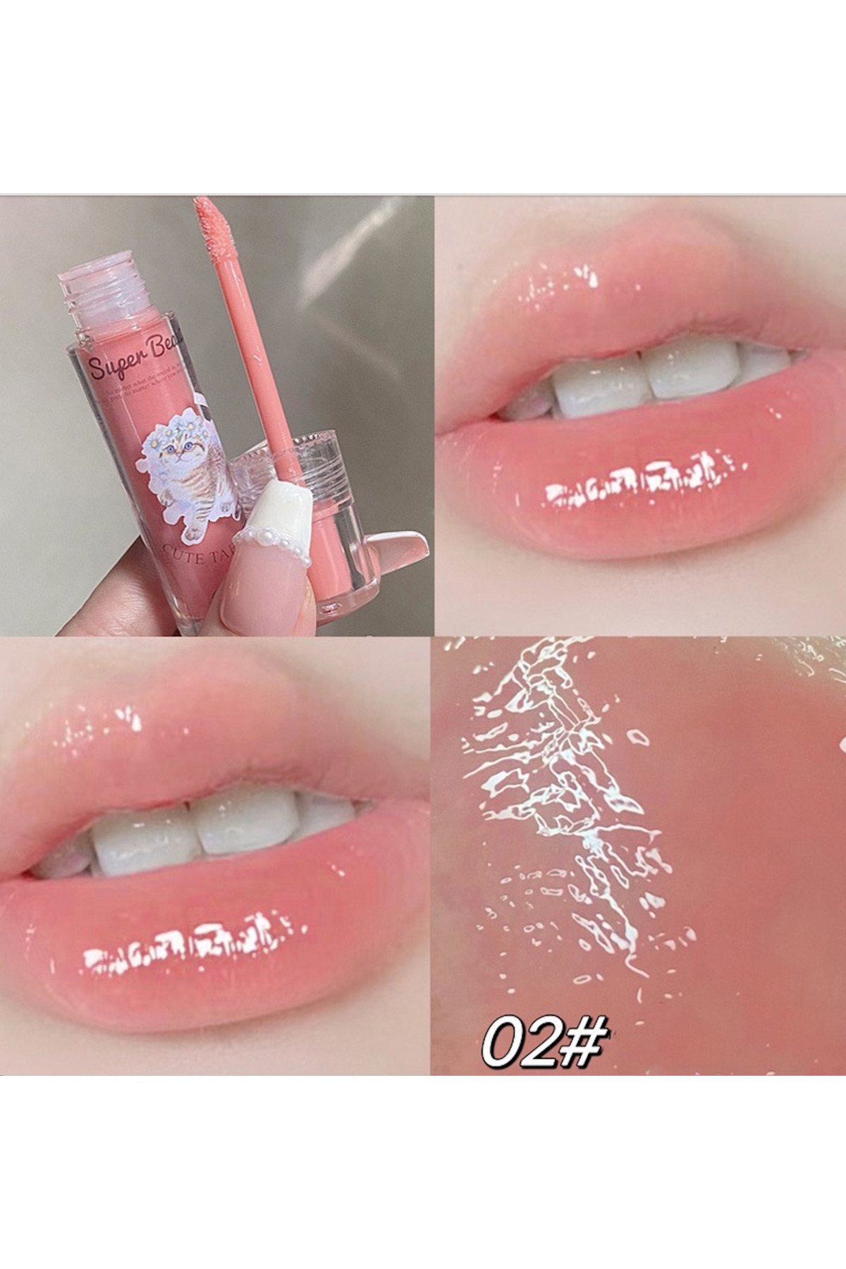 cappuvini Cute Cat Mirror Water Lip Gloss Transparent Jelly Lip Glaze 1 piece Cute cat lip gloss