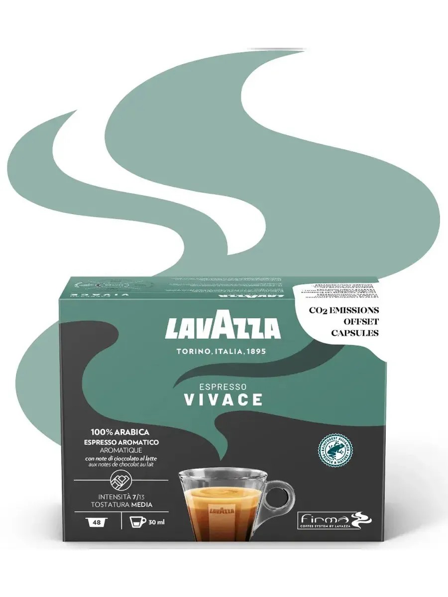 Lavazza Firma Vivace capsules, 50 pcs., 100% Arabica, which combines the rich flavor, roundness, and density of Brazilian origin with the subtle aroma of washed Arabica from South America.