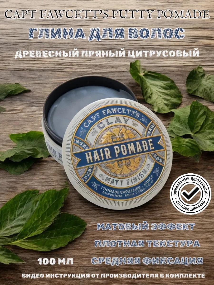 Глина для укладки волос Captain Fawcett Matt Clay средней фиксацией. Подходит для самых разных укладок, требующих дополнительного объема и текстуры.