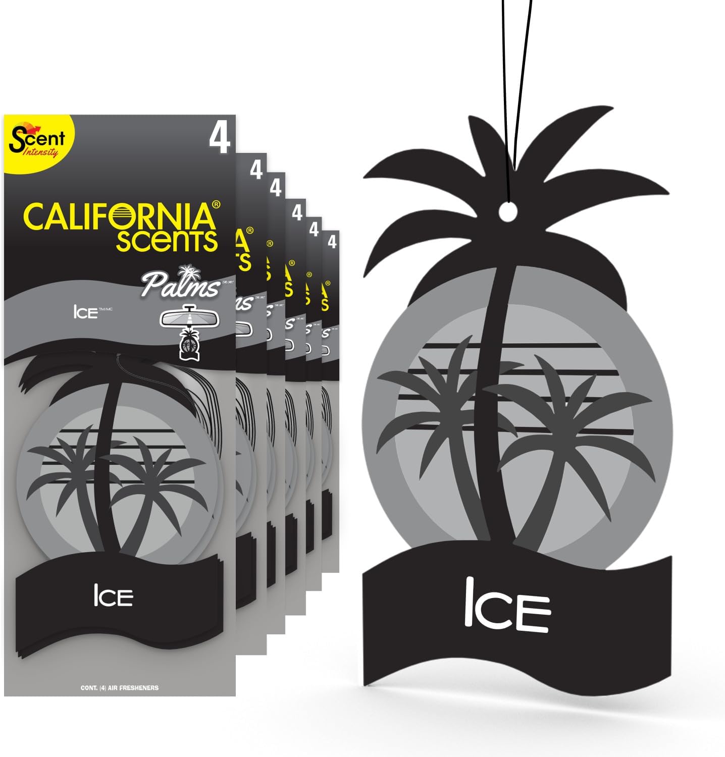 California Scents Palms Paper Ice Air Freshener delivers a fresh fragrance throughout your vehicle. Perfect for covering up unwanted odors, this hanging air freshener provides a strong, intense scent to quickly freshen your car, truck or SUV. Each car air freshener features a fun palm tree design in bright colors to add a little fun and originality to your vehicle. A convenient hanging loop makes installation fast and easy. Simply hang this car freshener wherever you need to cover up unpleasant odors. Each car fragrance comes in a sealed package to maintain its fresh scent until you're ready to open it. Live fresh.