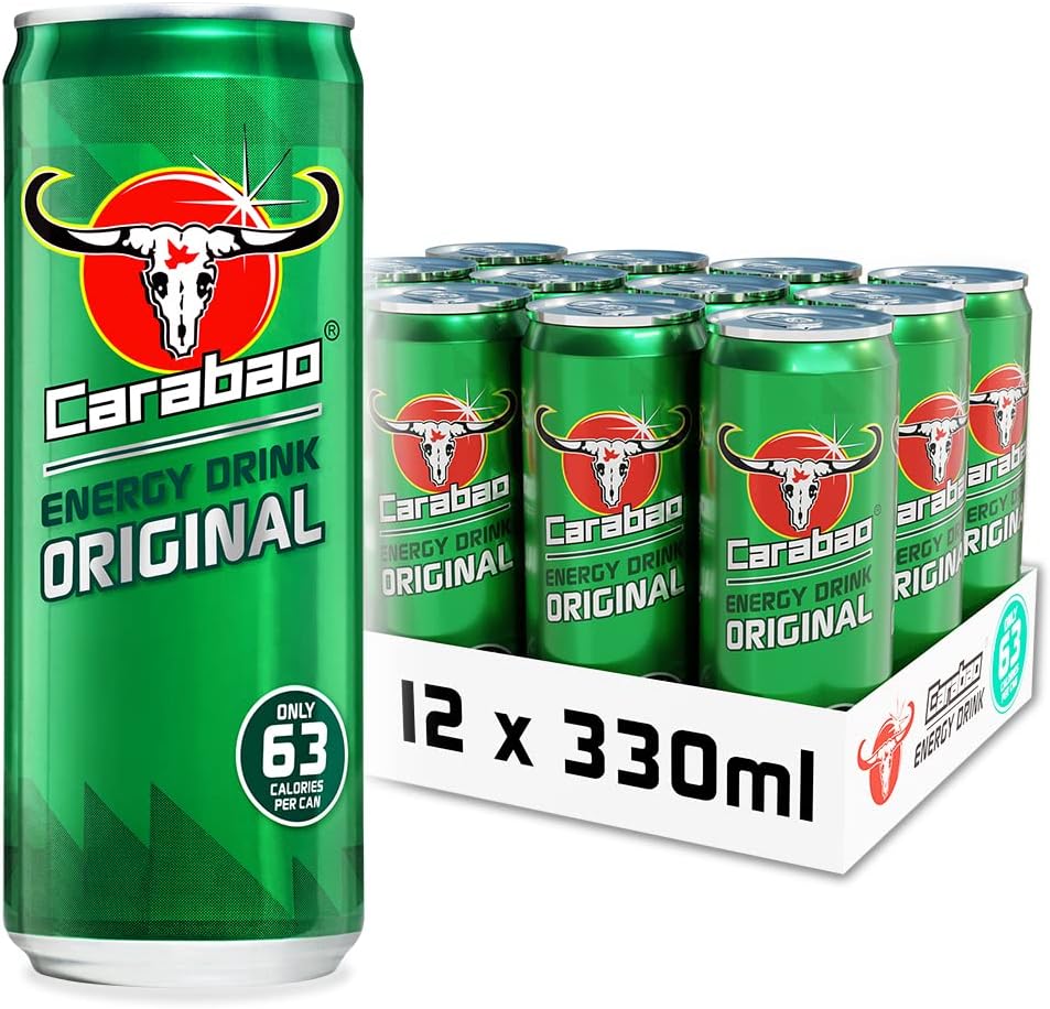 Carabao Energy Drink Original is a refreshing and great tasting low calorie energy drink. Enjoy our original, distinctive taste in this light and refreshingly carbonated energy drink. Half the sugar of Red Bull and only 63 calories per can. Contains taurine, caffeine and B vitamins which replenishes energy* and relieves fatigue*. Comes in 12 pack of 330 ml each. *Niacin, pantothenic acid, vitamin B6 and vitamin B12 contribute to normal energy yielding metabolism and to the reduction of tiredness and fatigue.